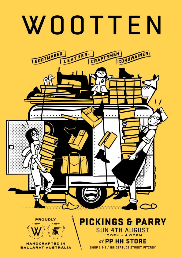 We warmly welcome Wootten here this Sunday 4h August 1pm - 4pm to launch the Wooten x PPHH Gordon Boot. This beautifully hand-made capsule collection will be available in-store to try on all sizes 8 -11 (including half sizes). You can then customise with your choice of six upper leathers, two sole colours and a plethora of waxed cotton or paracord laces to make your boots as individual as you are.