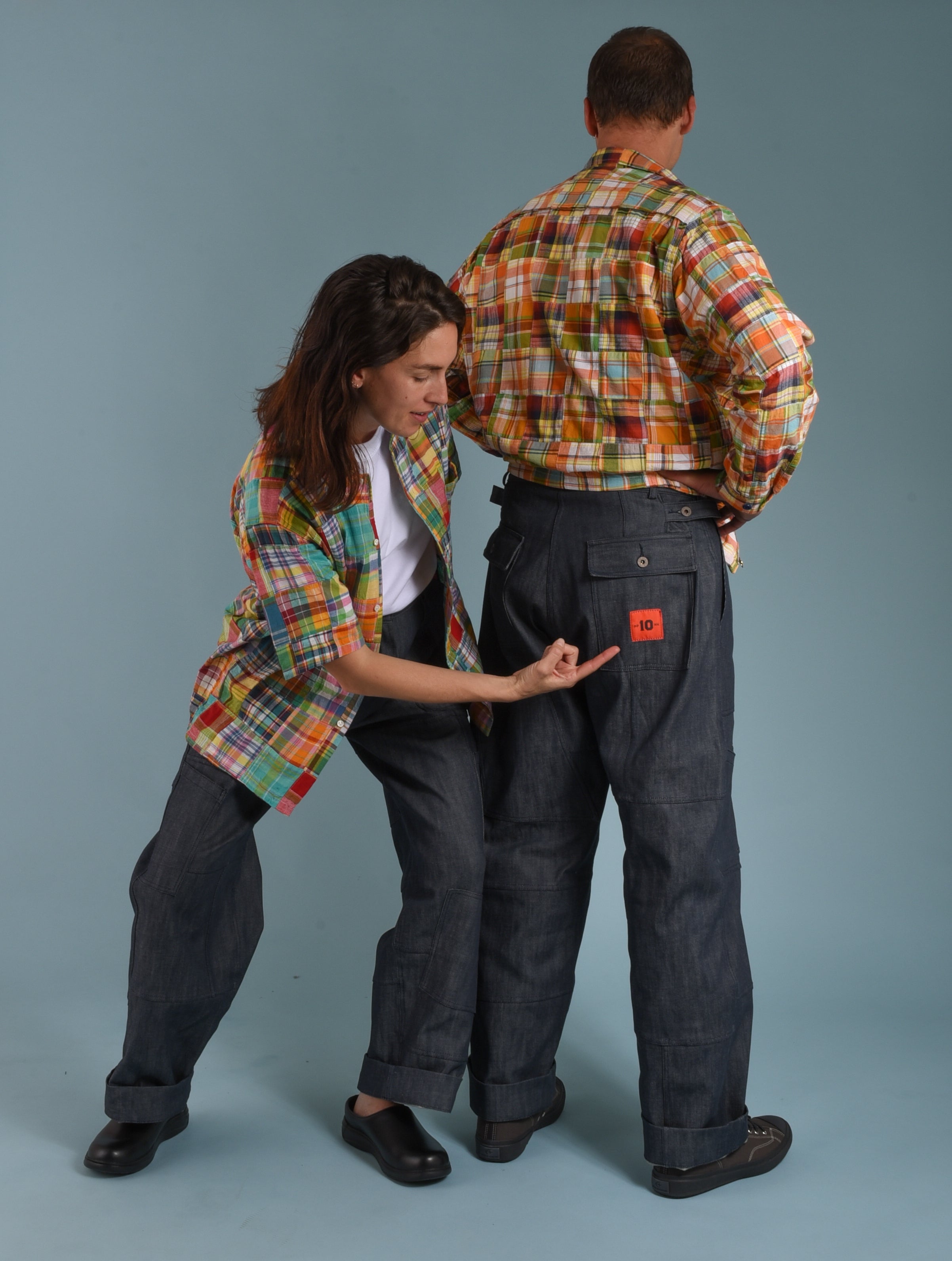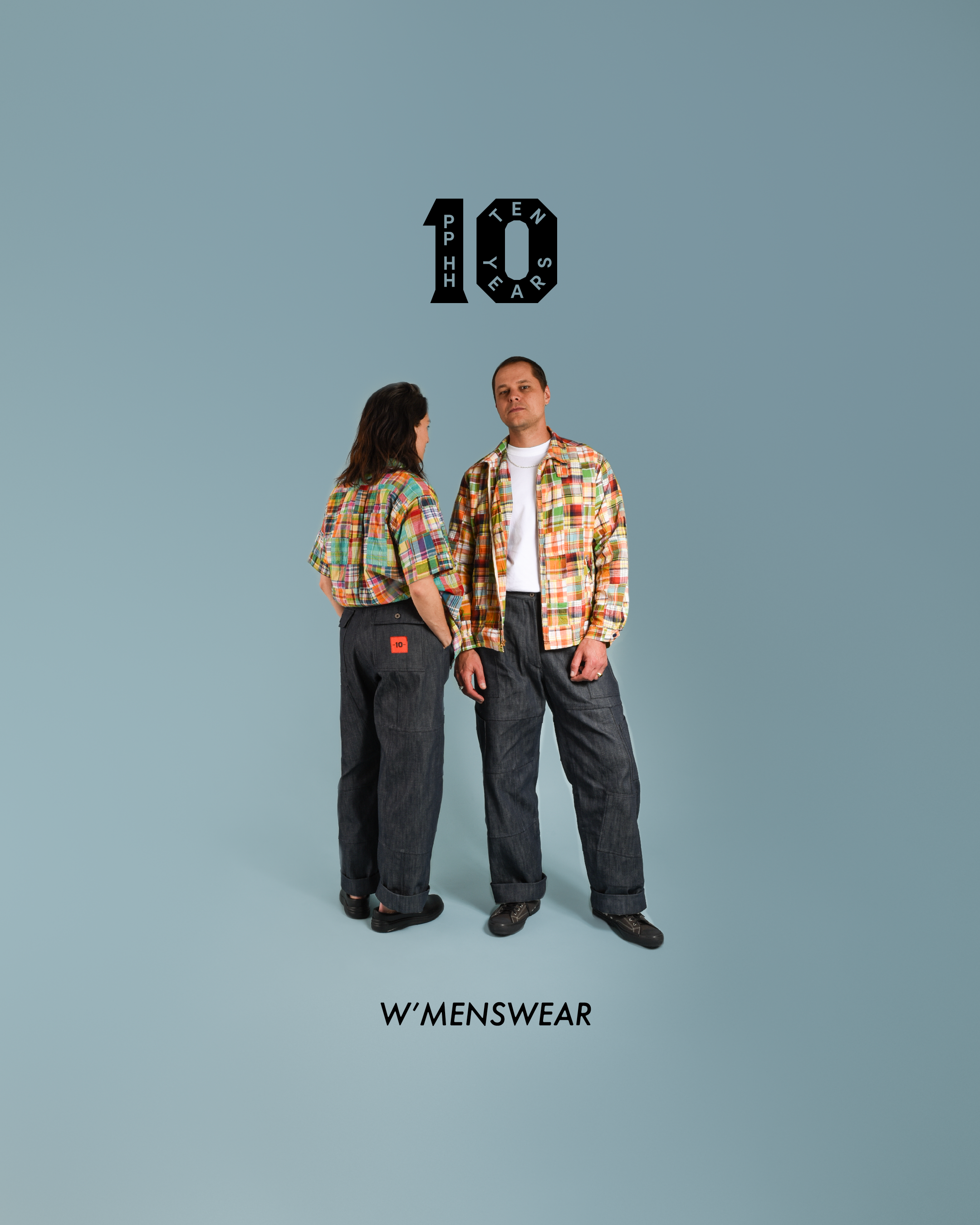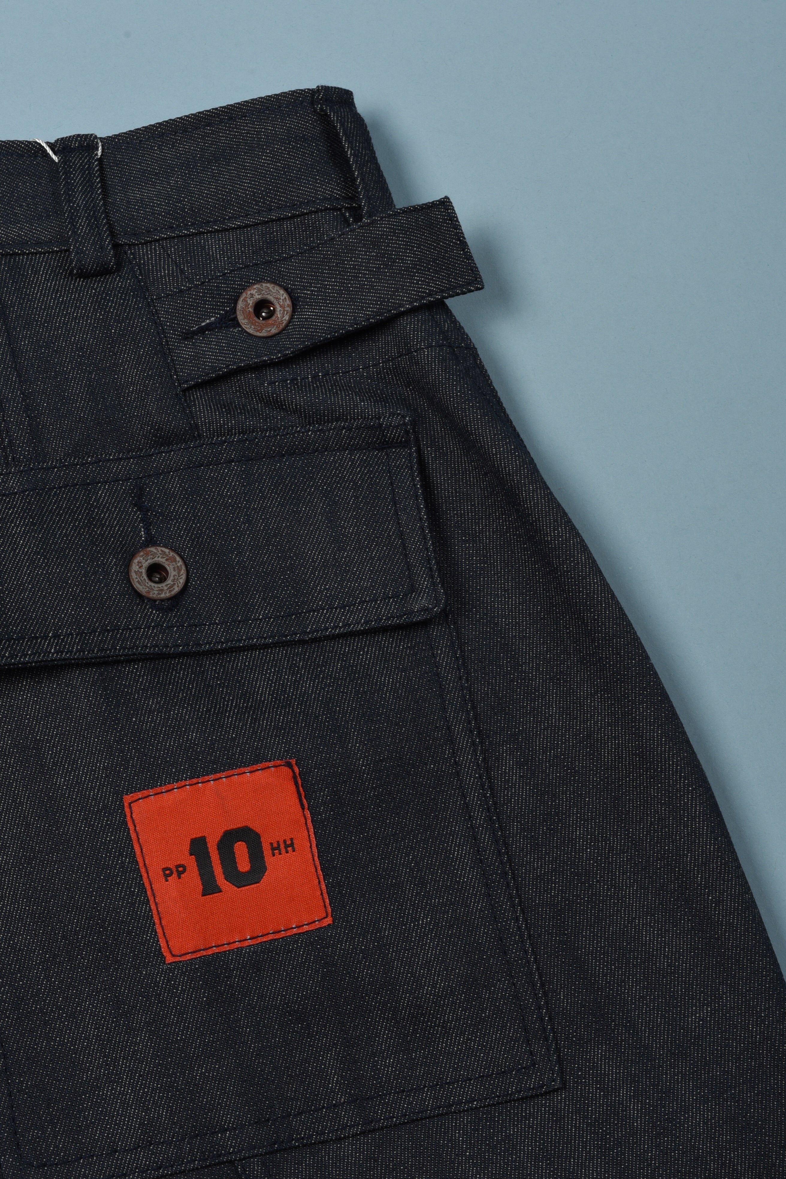 Our baseline started with the Good Ol’ Whats-Her-Face Flight Trousers (a firm PPHH favourite). Good Ol’ Whats-Her-Face is a line by W’menswear, designed to support a community of artisans using vintage or repurposed materials. These unisex trousers are made from a hand-selected off cuts of Japanese Denim and have a bespoke 10 Year PPHH Collaboration label stitched to the back pocket.