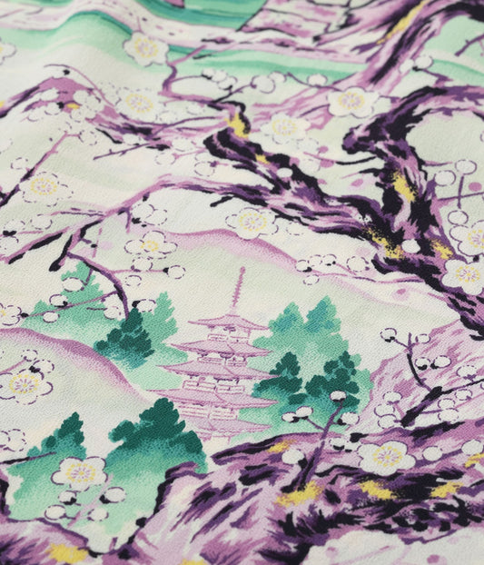 SUN SURF RAYON HAWAIIAN SHIRT “SCENERY OF JAPAN" - GREEN