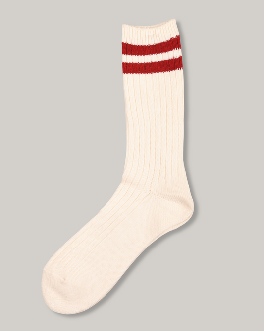 ANONYMOUS ISM WOOL CASHMERE NEON STRIPE CREW - OFF WHITE / BURGUNDY