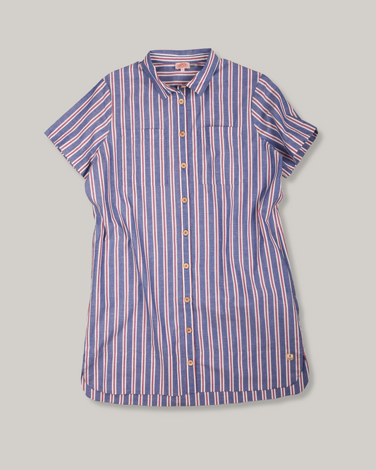 ARMOR LUX STRIPED SHIRT DRESS - SEAL/ECRU/ ROUGE