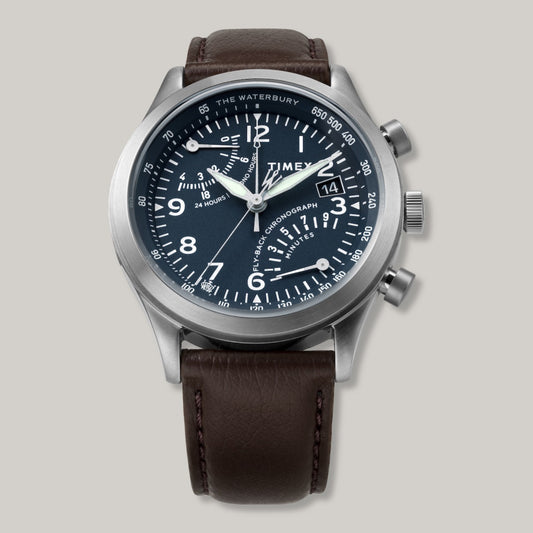 TIMEX WATERBURY CHRONO WATCH - BROWN LEATHER