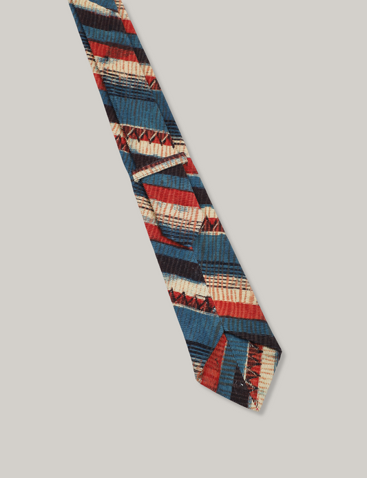 KARDO BLOCK PRINT TIE - BLUE/RED/NATURAL
