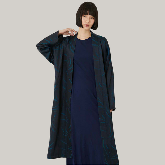 BLUE BLUE JAPAN WOMEN'S MEBUKI SATIN HAORI JACKET - DARK NAVY
