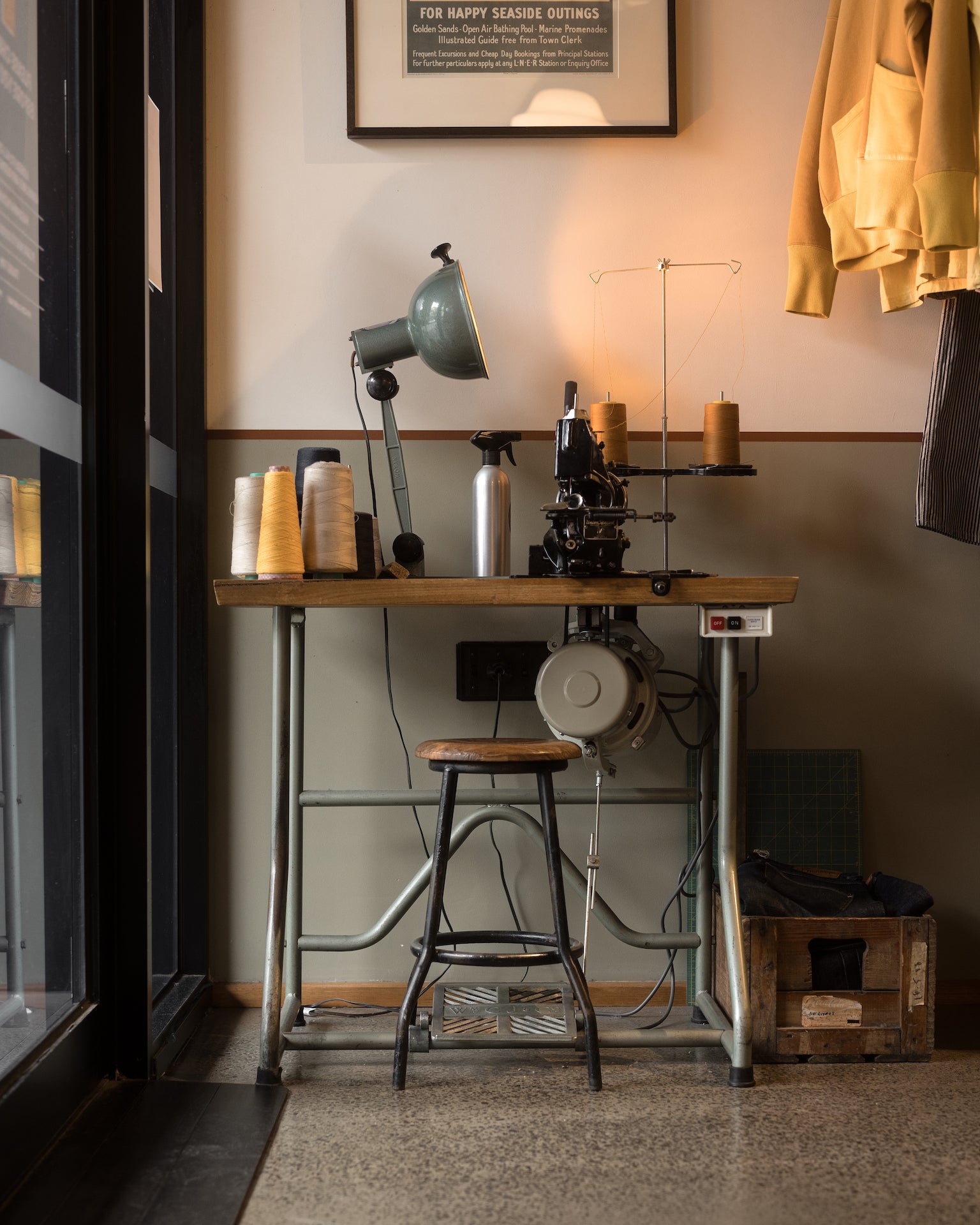 Known for its distinctive chain stitch pattern, the machine twists the fabric slightly as it is pulled through the feeder and, after many wears and a few washes, a familiar roping effect appears at the hem. This 'roping' is highly regarded by denim lovers as an authentic detail.