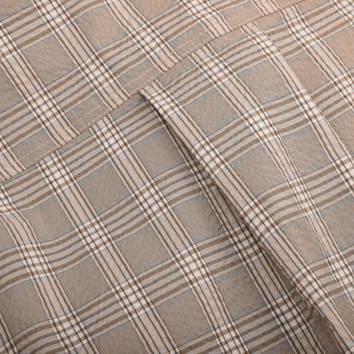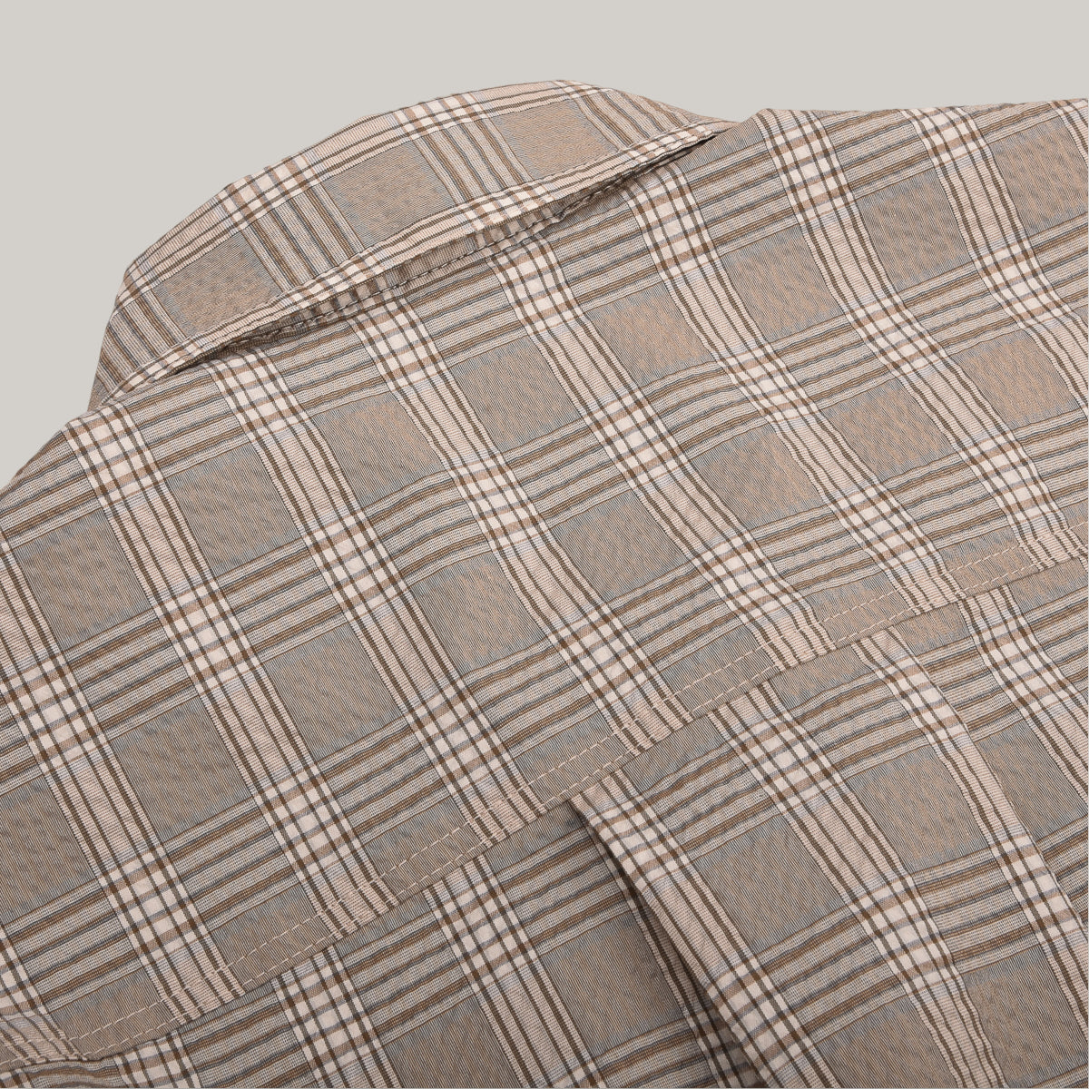 A new, more modern vision of the classic seersucker, offered in a series of "yarn-dyed"designs that reflect timeless patterns. The fabric is much higher in cotton than previous versions, giving it a more natural feel against the skin The uniqueness of the Coolmax® yarn guarantees maximum comfort in all seasons. Breathable, quick-drying, and packable. It becomes an indispensable fabric for the spring/summer season, whether on vacation or travelling, combining lightness and protection. Japanese-made fabric. Corozo buttons.