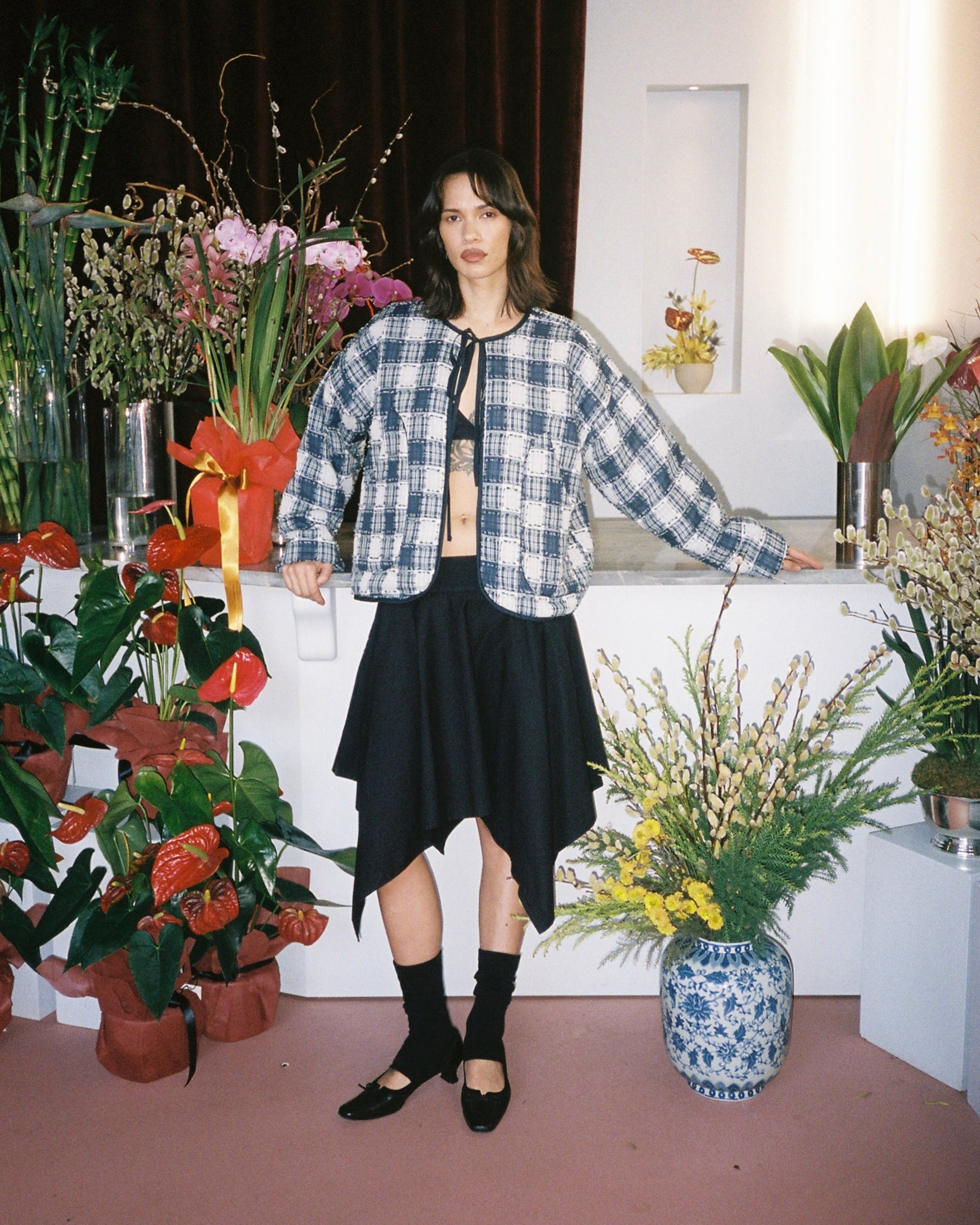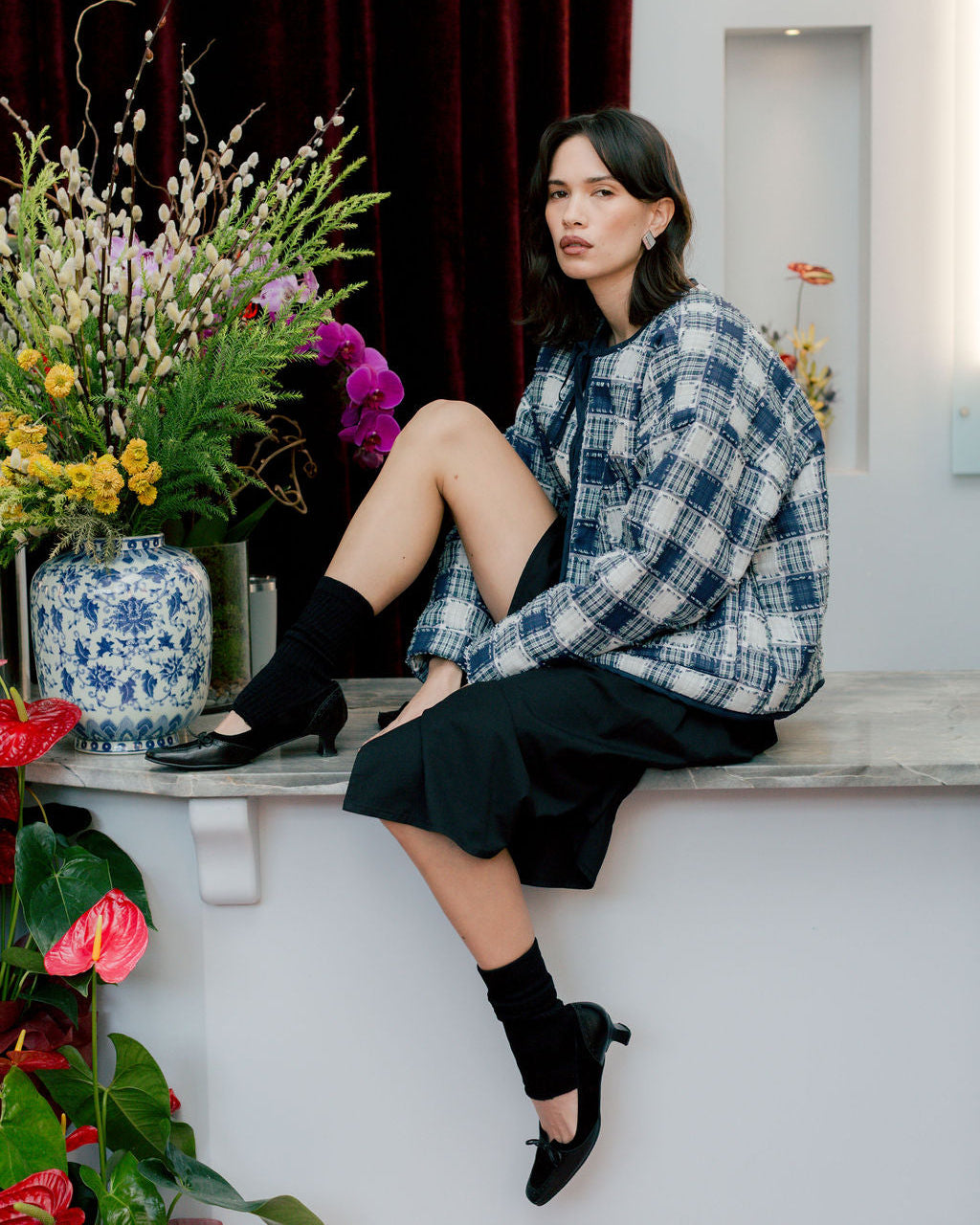 • Bomber jacket crafted from a specialty patch plaid fabric