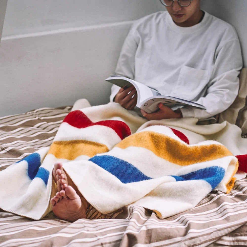 The Wool Blanket is inspired by the feel and comfort of 1800's designed blanket. They are produced in a region called Izumi Otsu, famous for their wool blanket production, where quality and craftsmanship have been passed down from generation to generation.