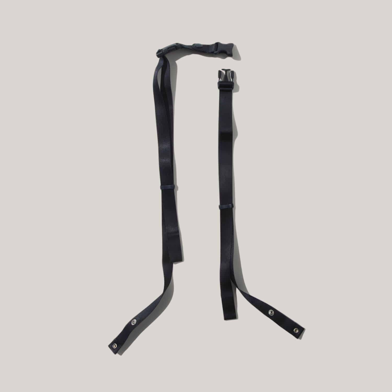 This is a double strap to use with Blankof products such as the Fisherman bag or Helmet bag, enabling them to be turned into a backpack.