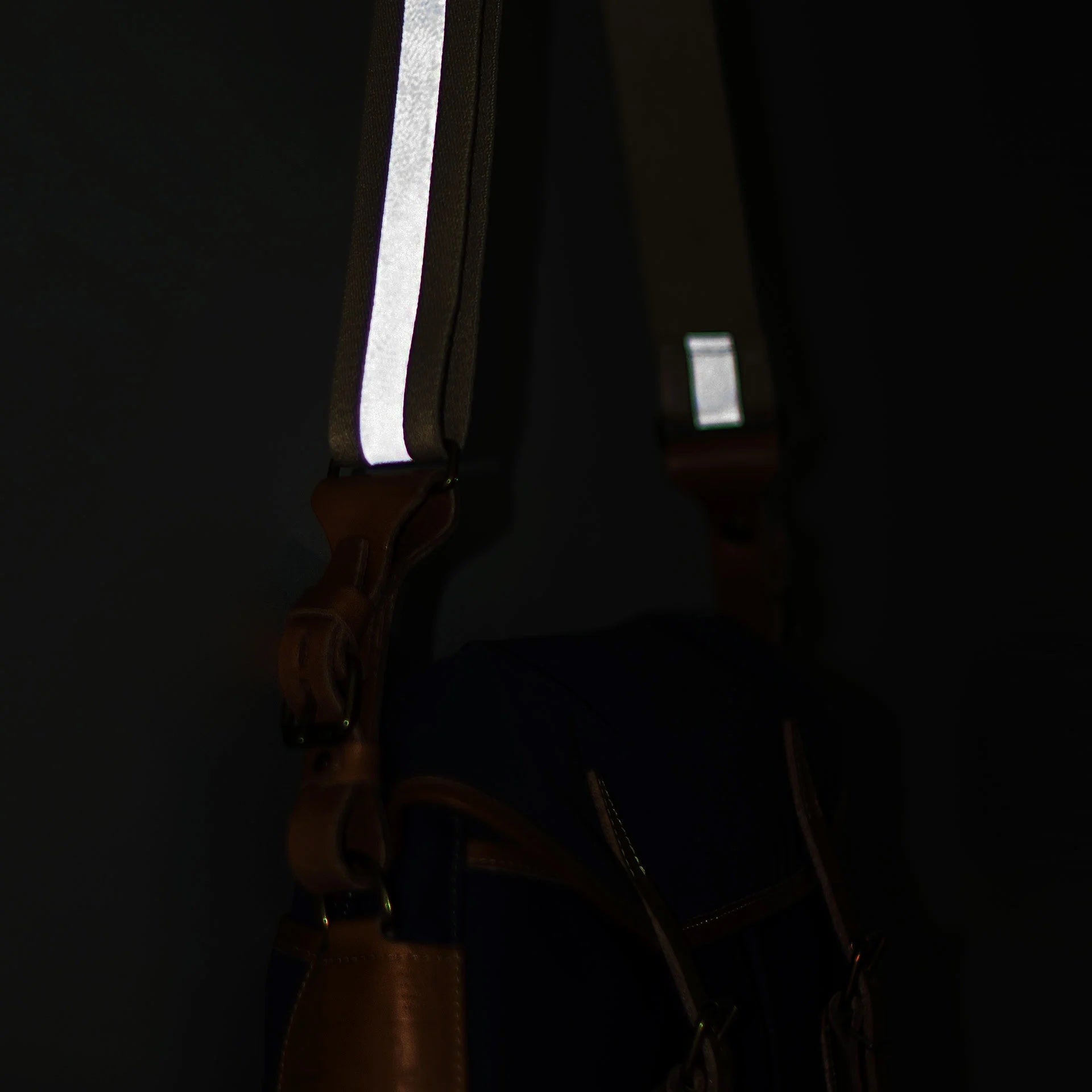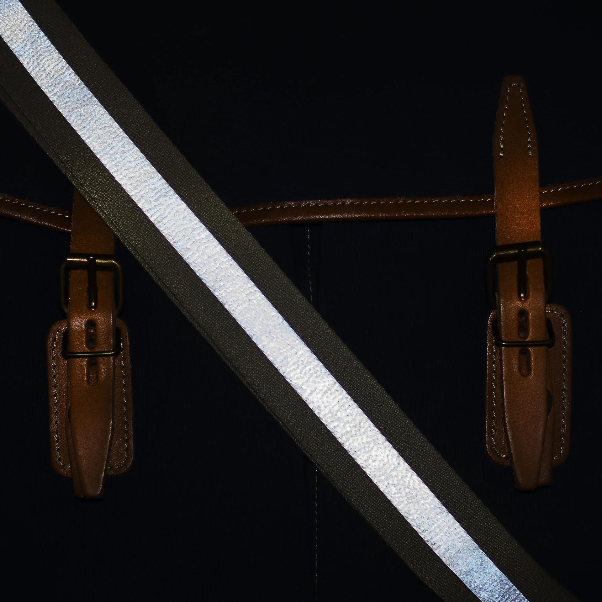 The reflective stripe strap is an ideal accessory for those travelling by bicycle or on foot at night with their Bleu De Chauffe bag. Made in their workshop at Saint Georges de Luzençon, the straps are adjustable and fitted with reinforced leather at each end. Attachment is as simple as two clicks of the carabiners.