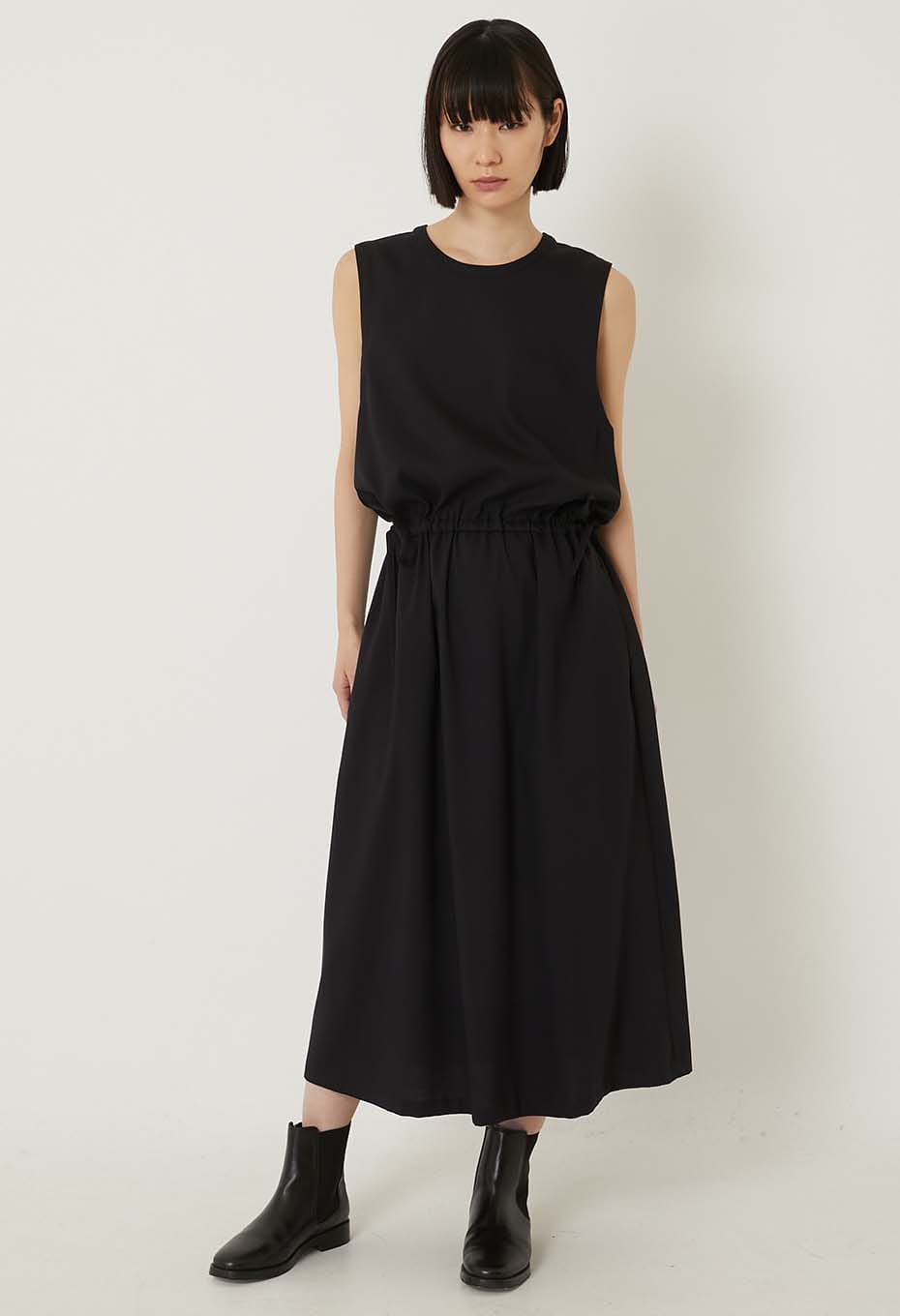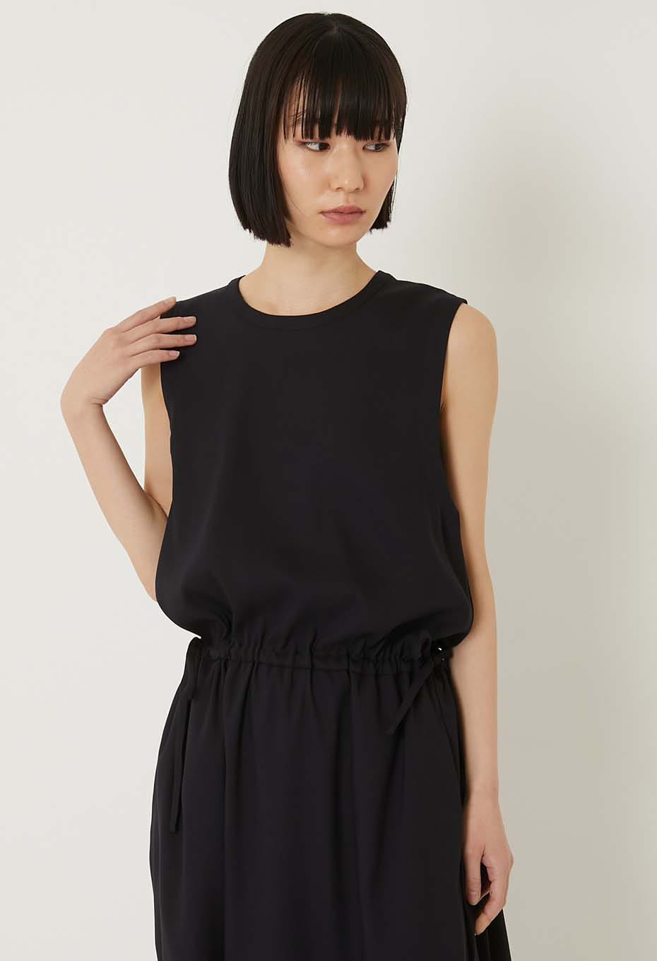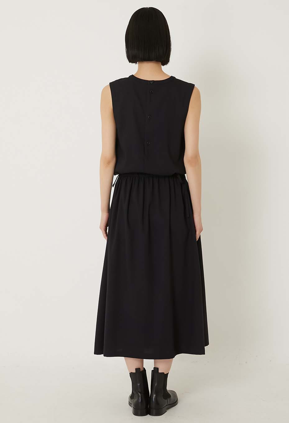 BLUE BLUE JAPAN STRETCH DRY TWILL GATHERED TANK DRESS- DARK NAVY