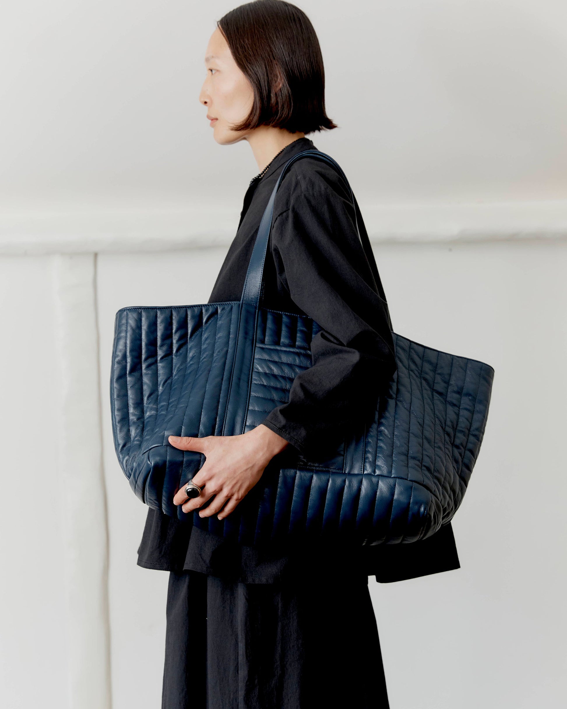 Their new season it-bag is made from entirely quilted Nappa leather - quilted in the North of the UK with 100% wool wadding, making the bag structured yet pillowy soft. features two shoulder handles for easy carrying, and a reinforced flat bottom allows this bag to be heavy duty. Inside you'll find a contrast brown leather lining, pockets and an additional zip coin purse to keep all your essentials organised. This versatile bag is meticulously designed for all your needs and has you covered for any occasion - the possibilities are endless.