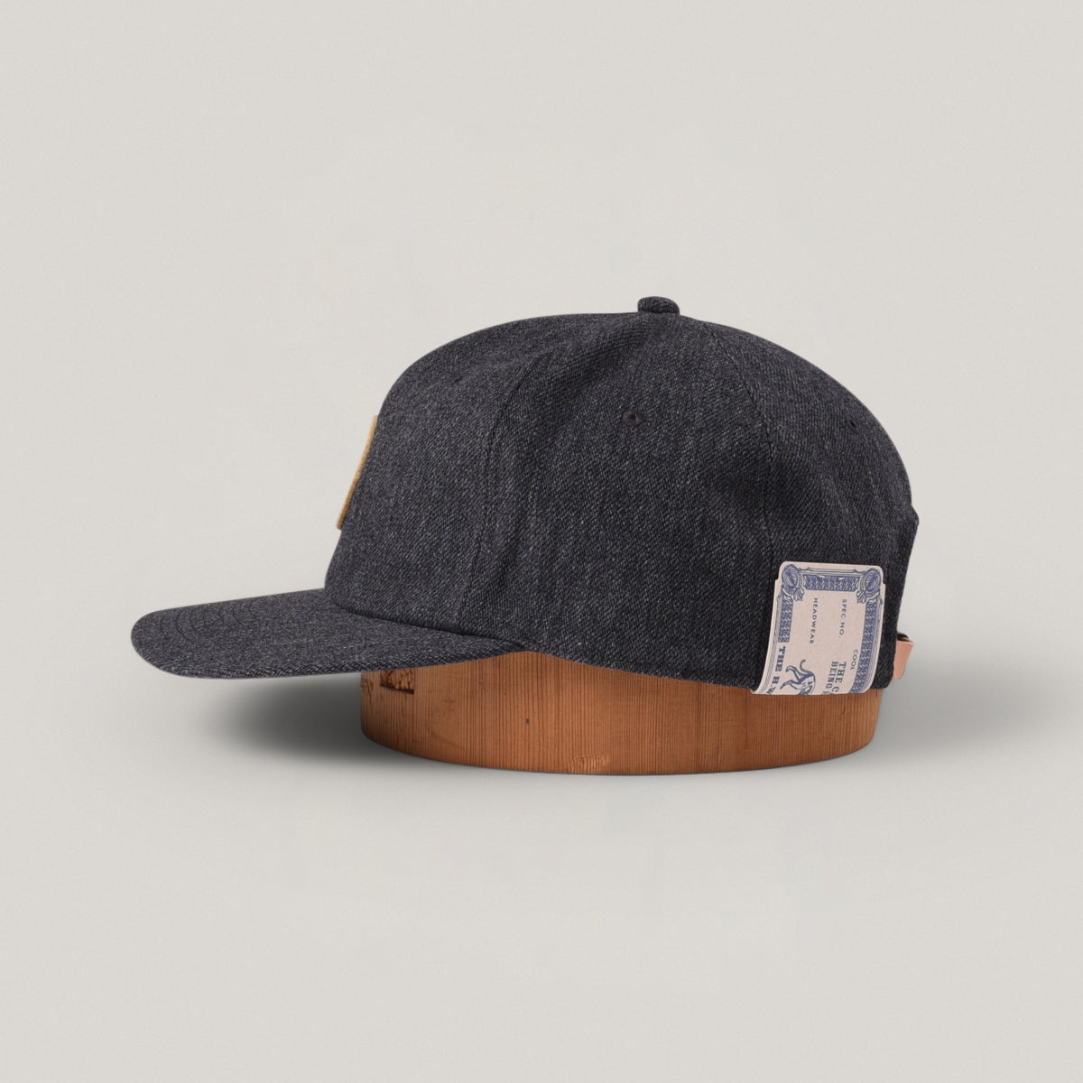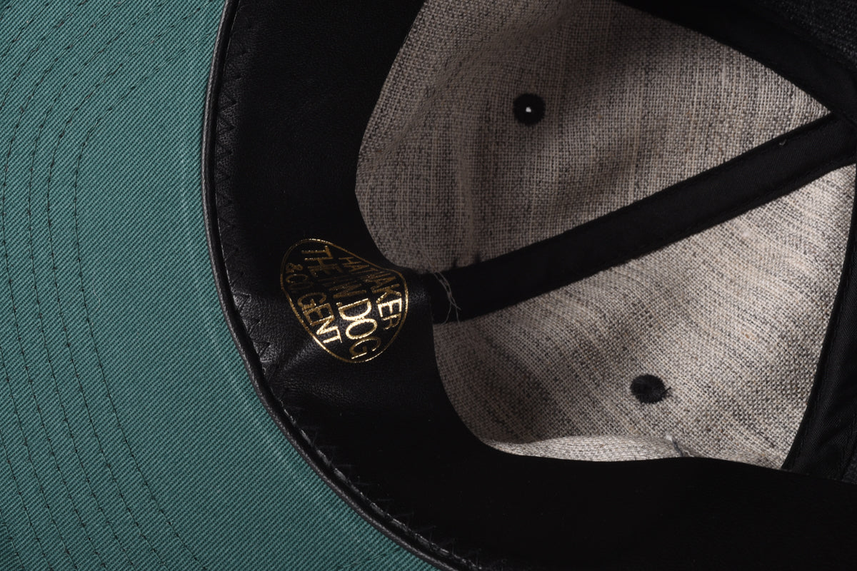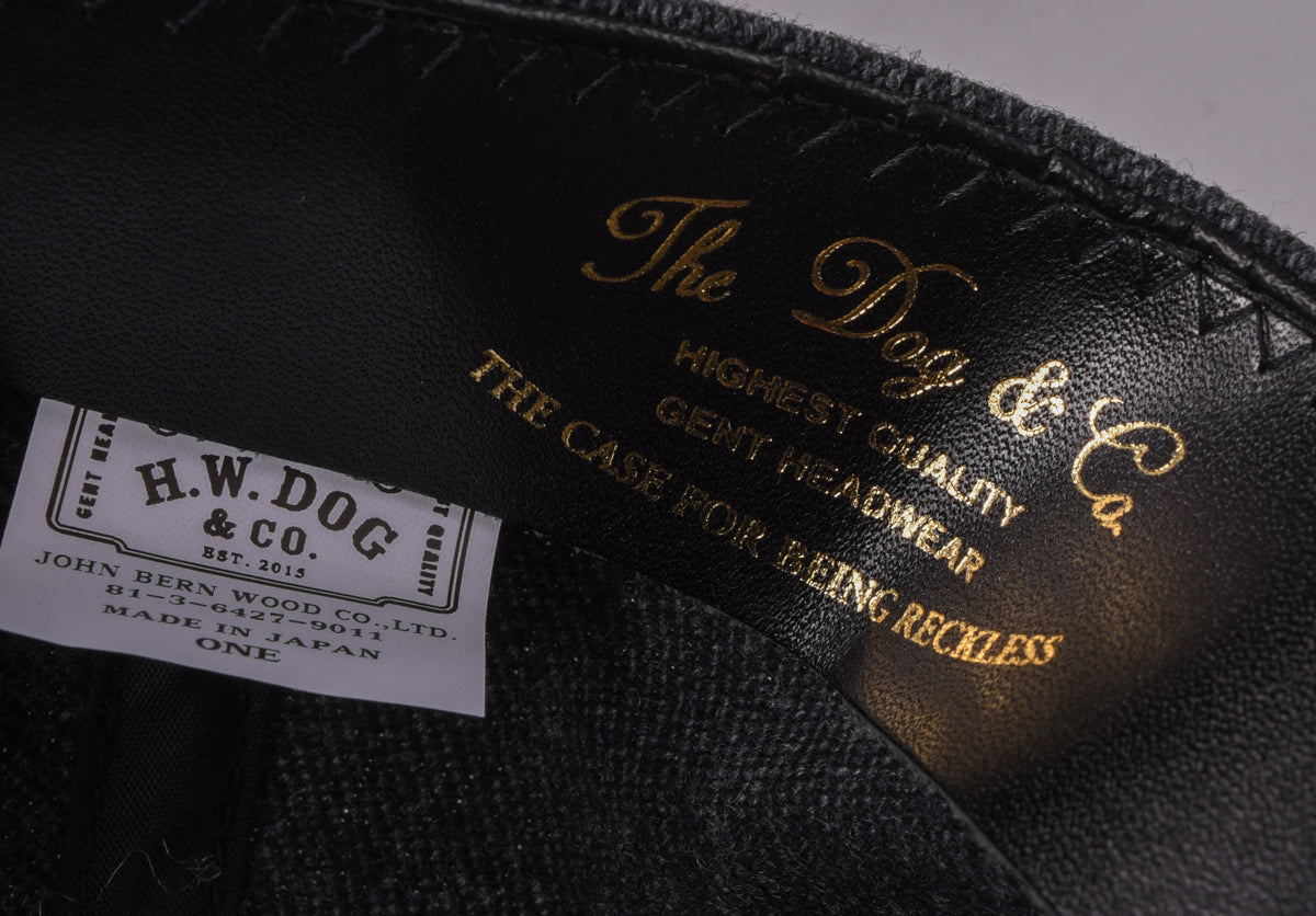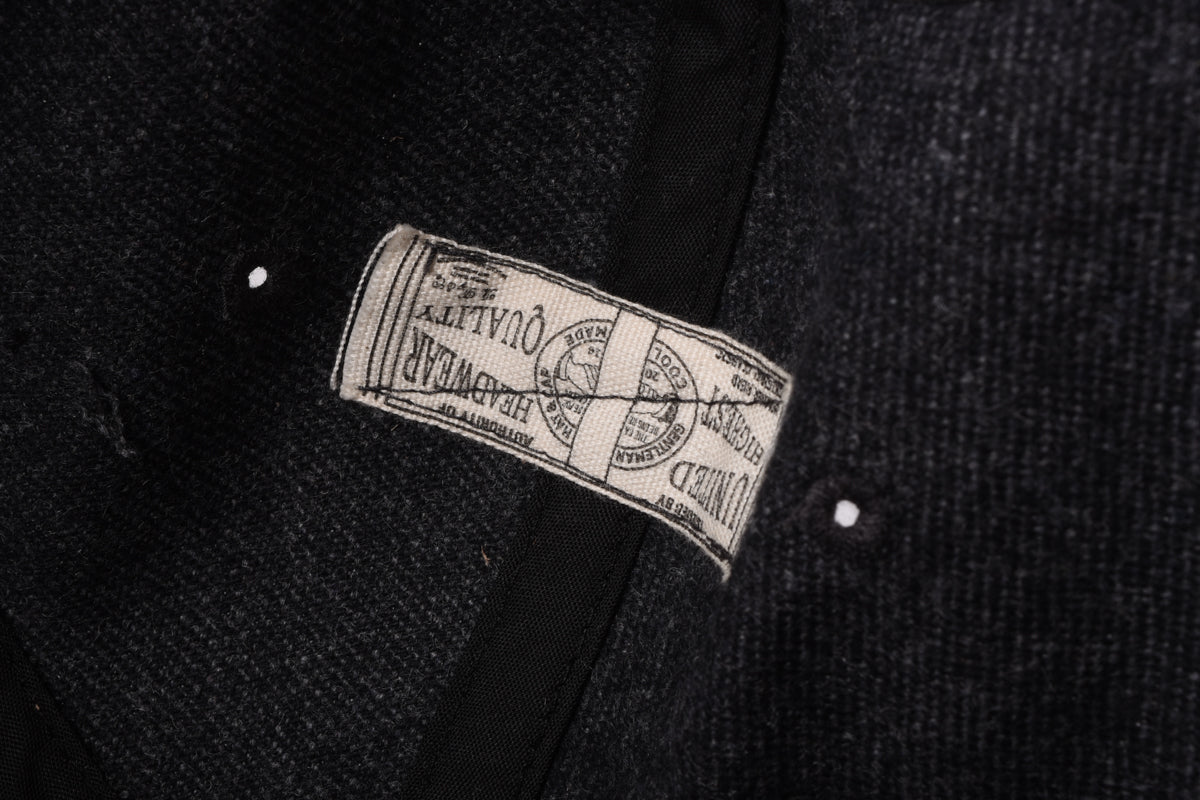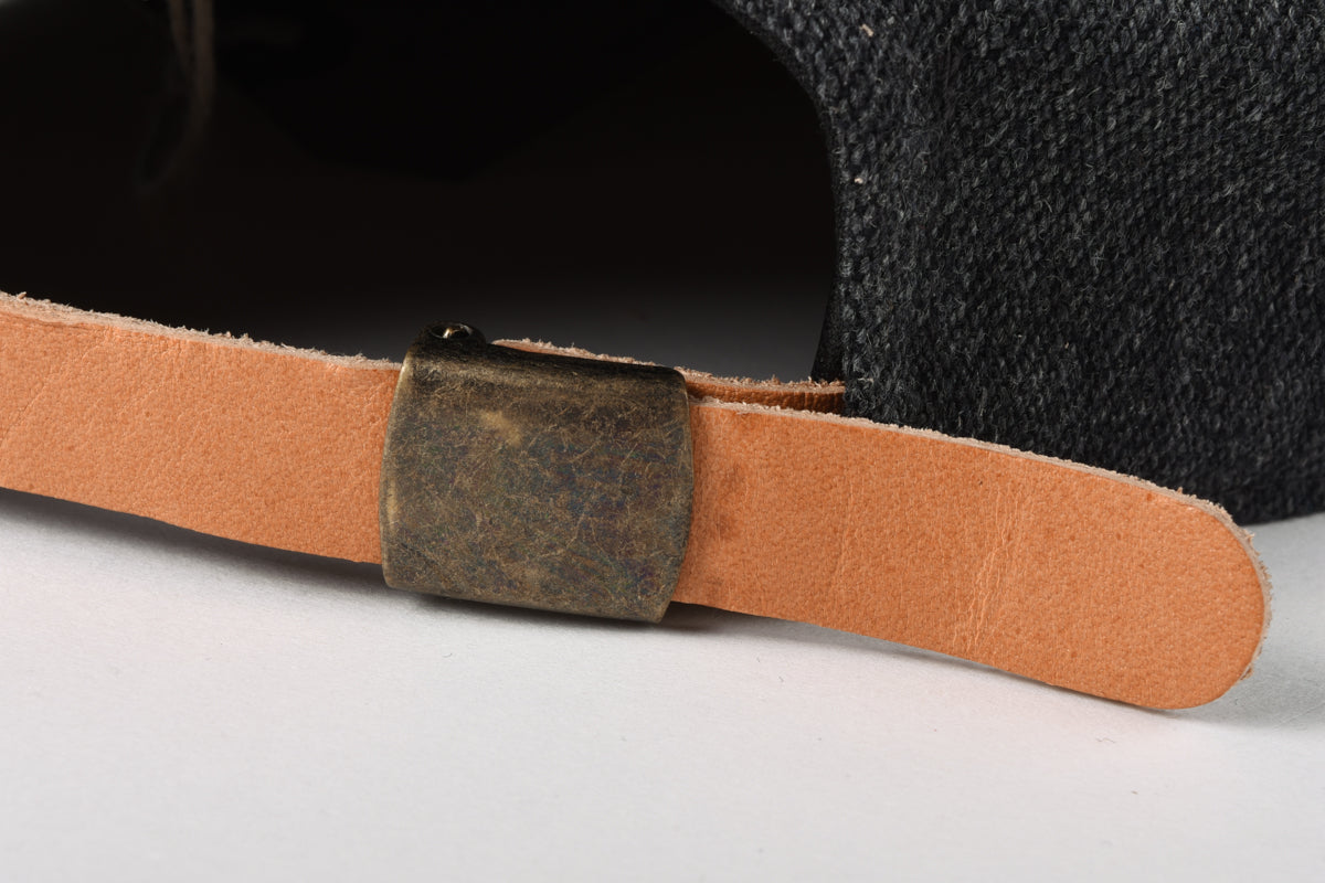 Superbly put together cap based on the models from the 1860's, that is, six panels. Hardy as hell in this wool and cotton mix, emulating the original horsehair models. An applique 'D' for dog sits on front with a cowhide leather band lining the interior with adjustable back strap. A superior dome piece.