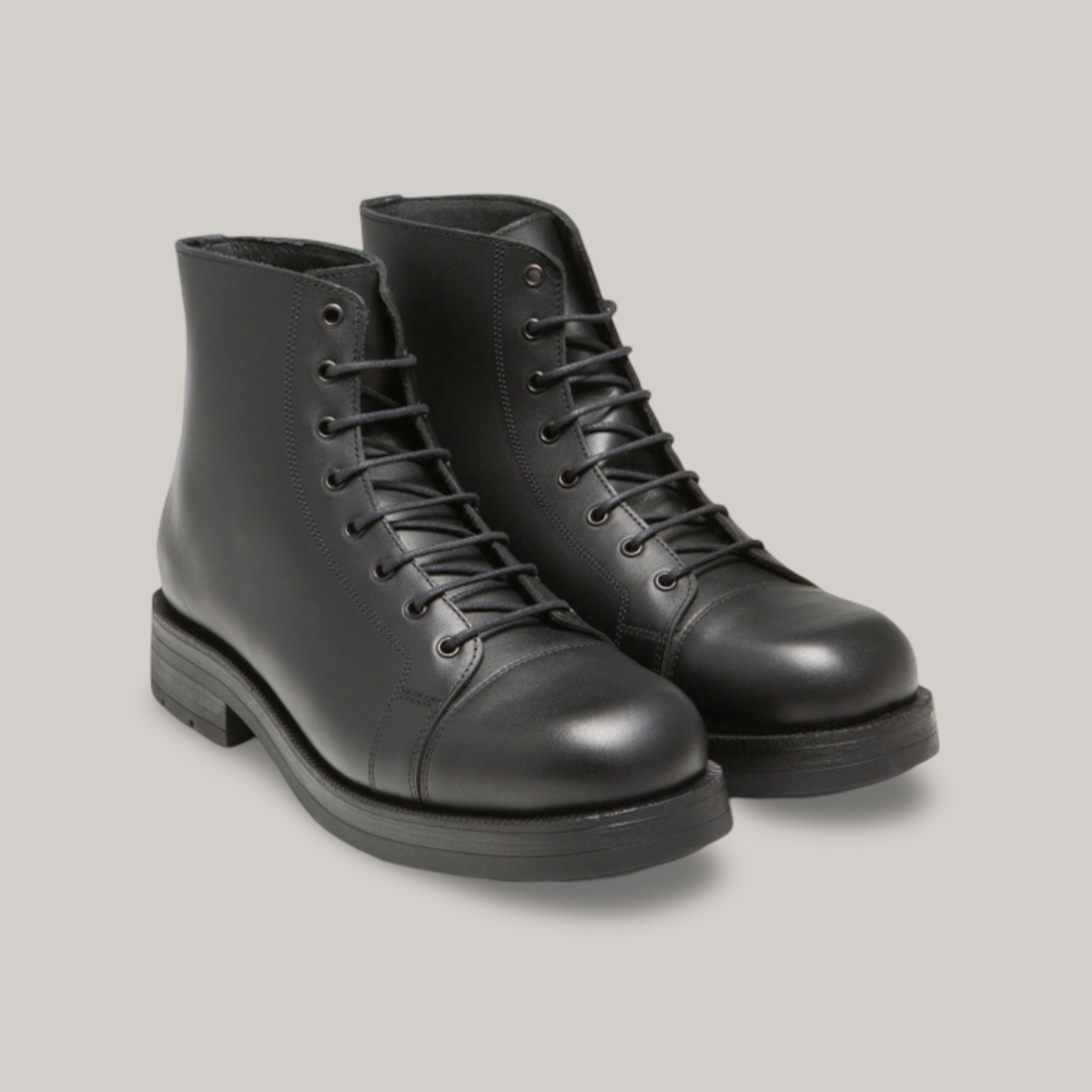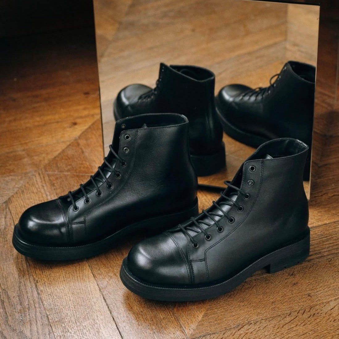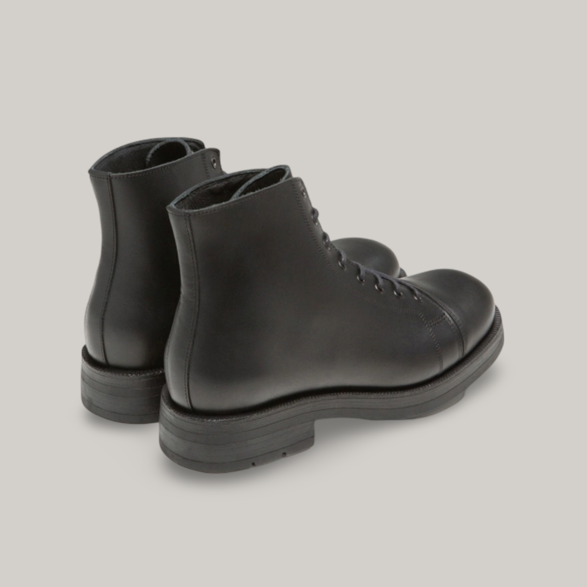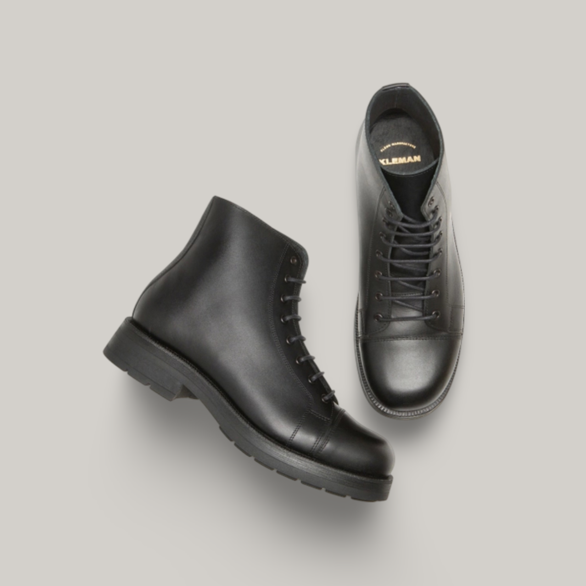 New vintage-inspired boot with the same cemented shock absorbent sole that Kleman always use. This chunky-ish silhouette still remains sleek thanks to its feature toe cap.  Eight eyelets so it is nice and tall for wintry weather combat.