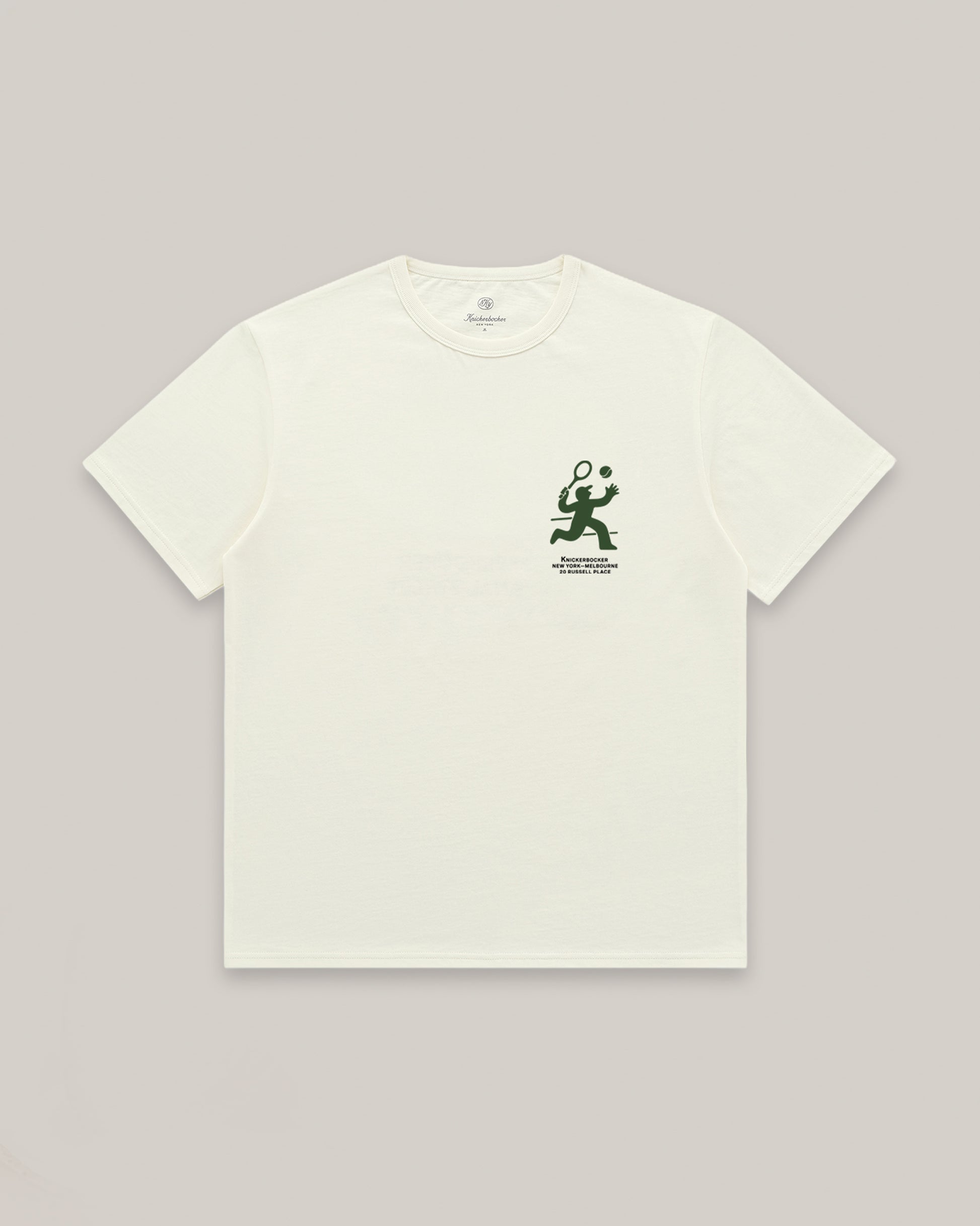 As part of an ongoing collaboration with the brand, we've produced a limited edition Tennis T-Shirt inspired by the Australia Open, arguably one of the most import fixtures of the sporting calendar. With an exclusive graphic on chest and back, this one is produced with a custom-developed heavyweight jersey fabric that is the result of years of development. The knit is made with long staple, ring-spun and combed cotton yarn. This yarn quality provides both incredible softness and great durability. Their heavyweight jersey fabric is nearly double the weight of our regular t-shirt, with a tightly knitted construction for a fit that drapes and a more boxy silhouette. The collar is finished with a double-needle mounted construction, a nod to some of the vintage sportswear tees we have always appreciated.