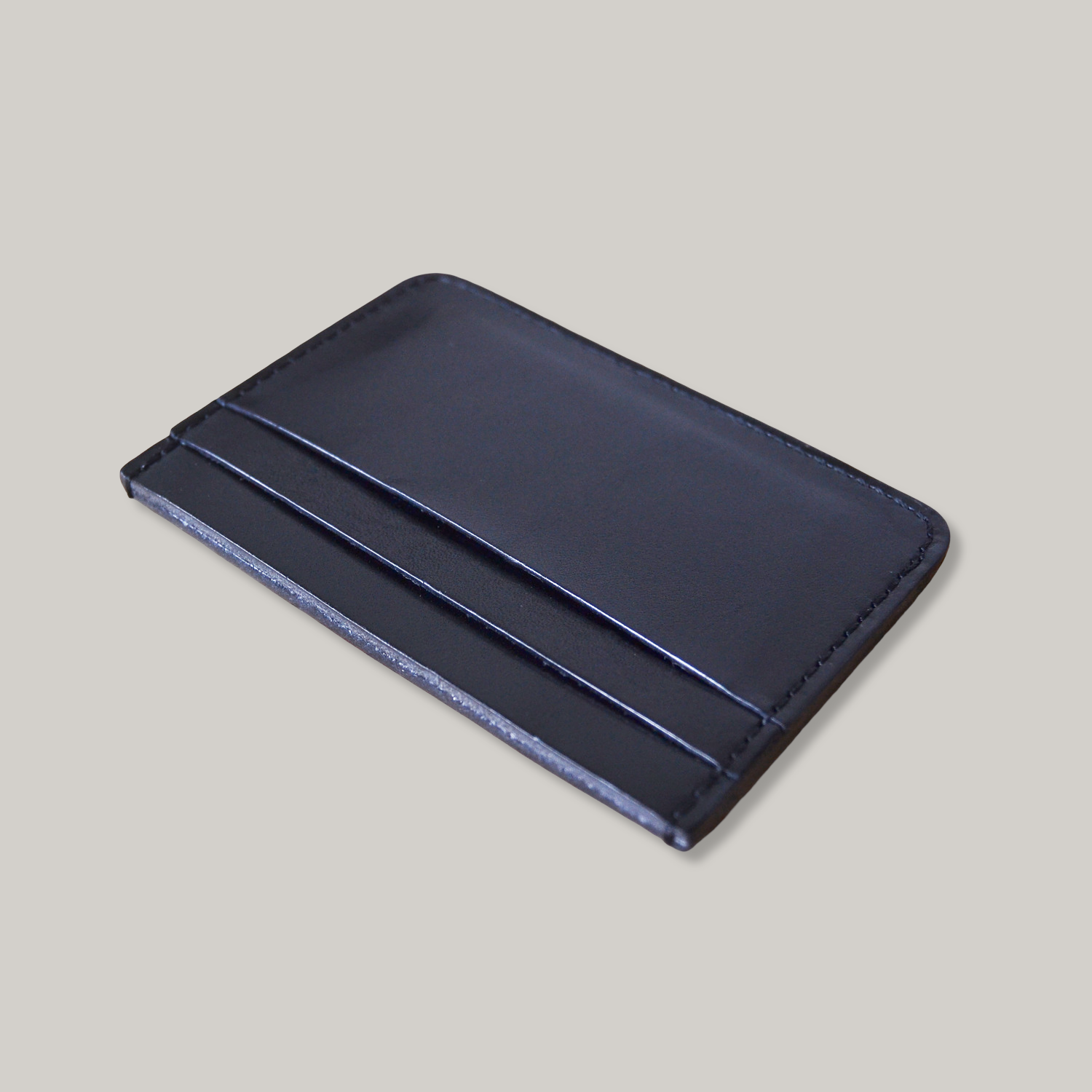 Standard card sleeve wallet black colour. Two card sleeves in addition to the main pocket. Invisible logo, minimalist design.