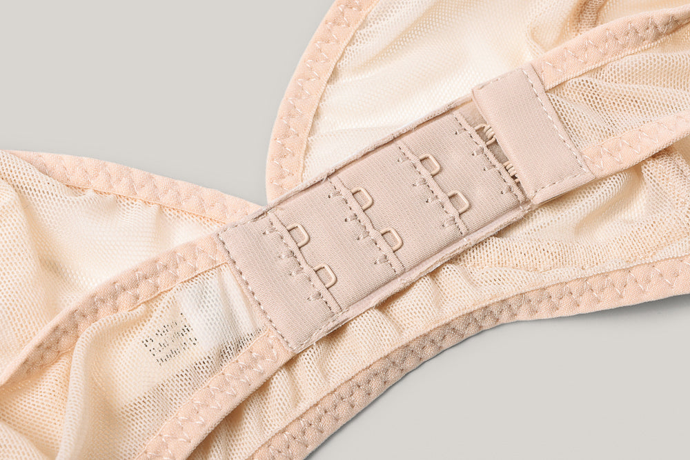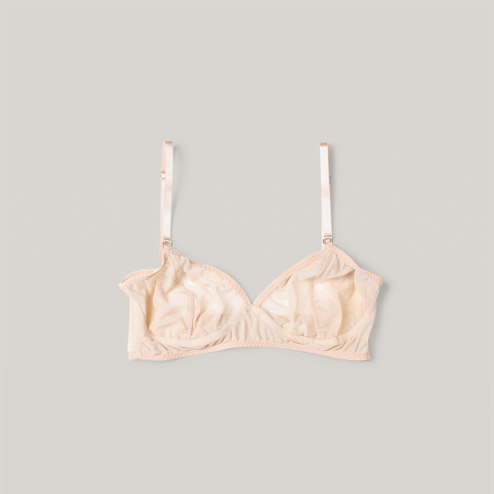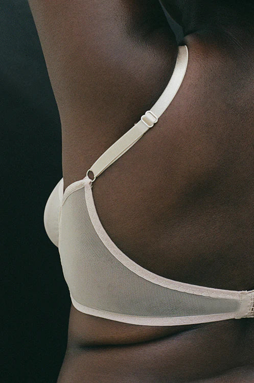 Equal parts structure and ease, our wire-free balconette is a modern nod to mid century intimates. An easy v neckline with adjustable elasticized straps and back closure offer moderate support for everyday wear. Made in our premium deadstock mesh sourced from warehouses in Los Angeles, with tailored, single layer cups and a double layer frame at underbust for added support.
