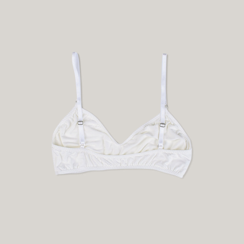 The Recline Bra offers a gentle scooped neck, adjustable shoulder straps, and pullover style for ultimate ease of wear. Made from a double layer of soft, environmentally-conscious bamboo. Named for Mies Van Der Rohe’s Reclining Chair series as an ode to moments of calm in your everyday.
