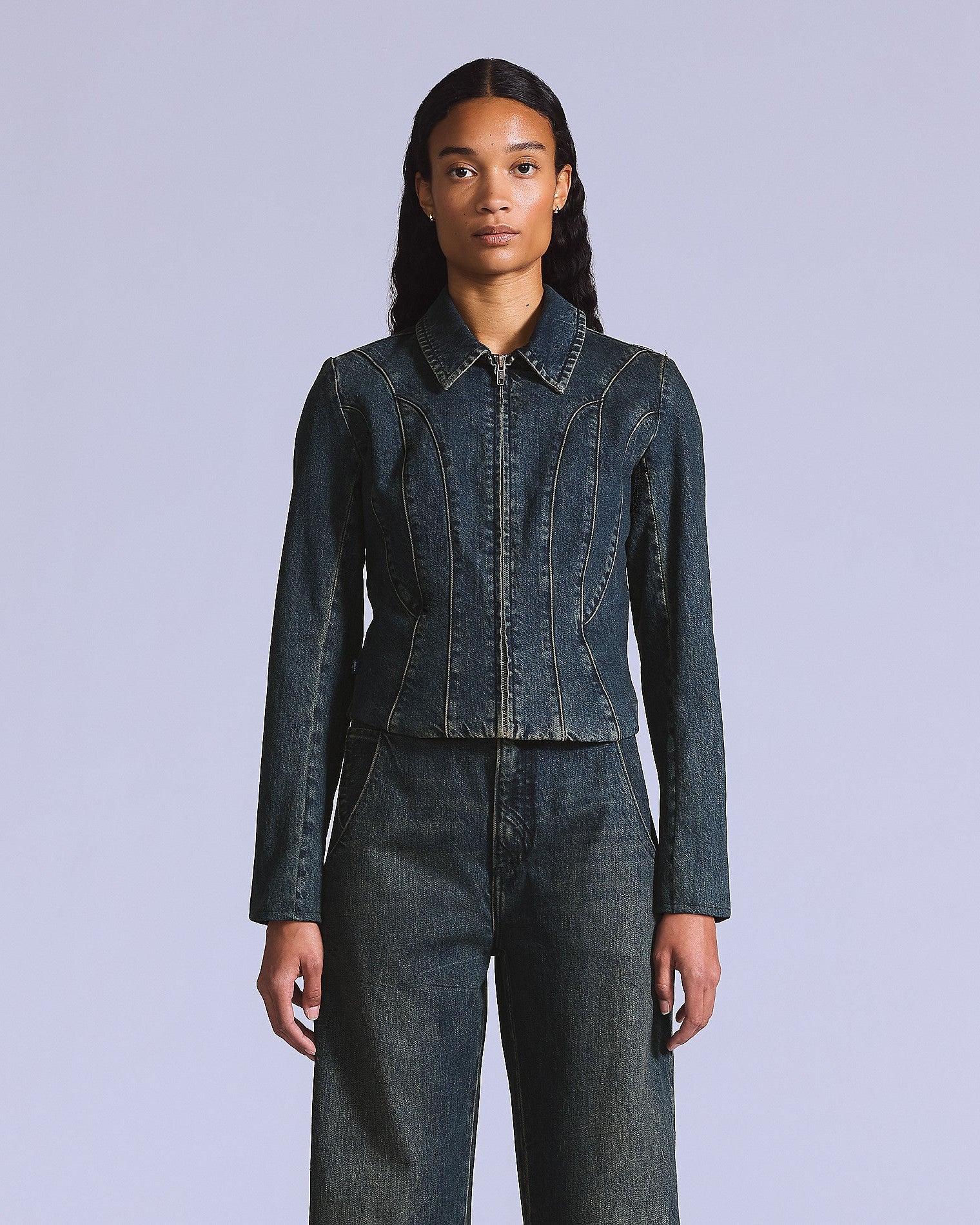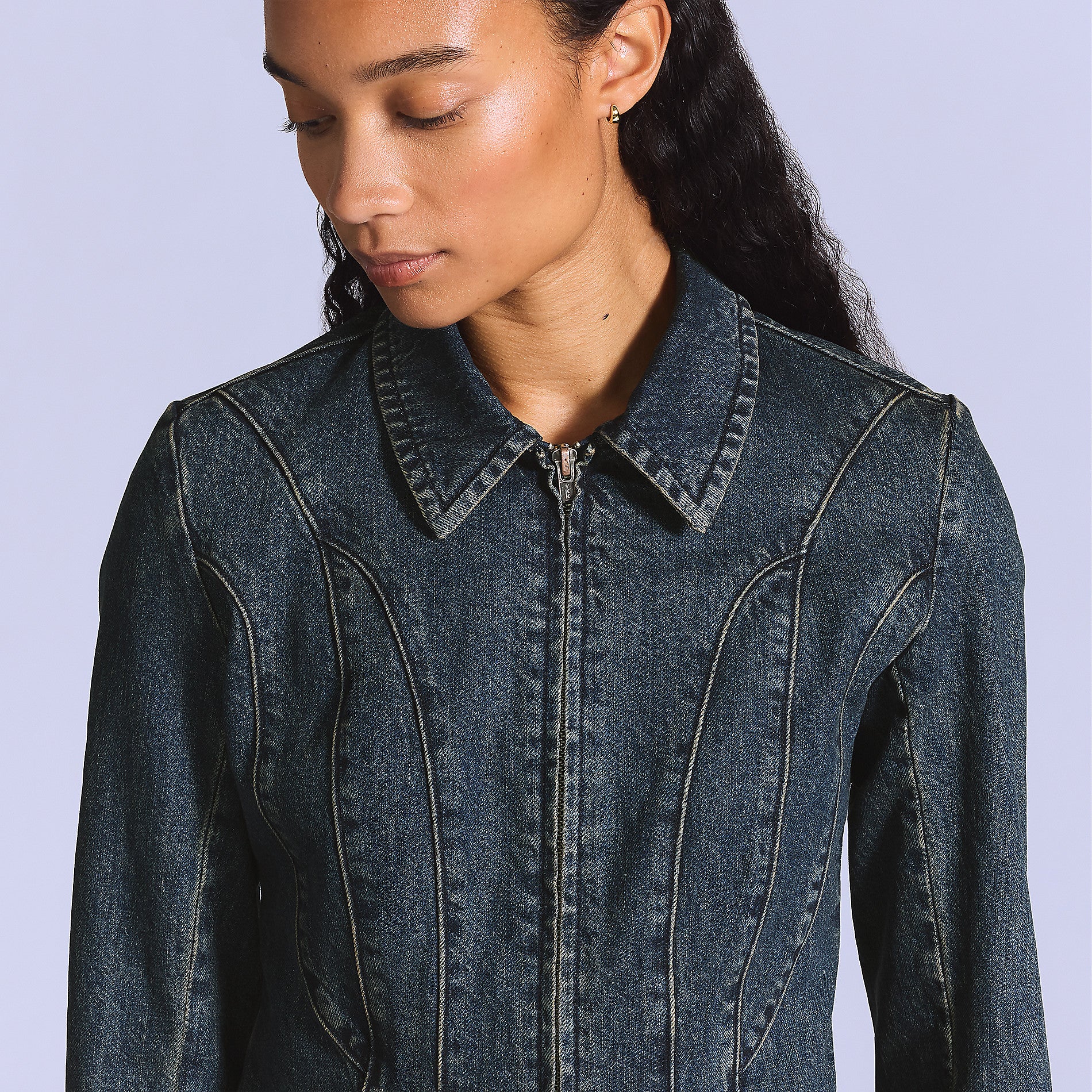 With its ultra-flattering slim fit, the Moto Jacket is designed with seam detailing and a classic zip-up front, using premium Japanese denim.