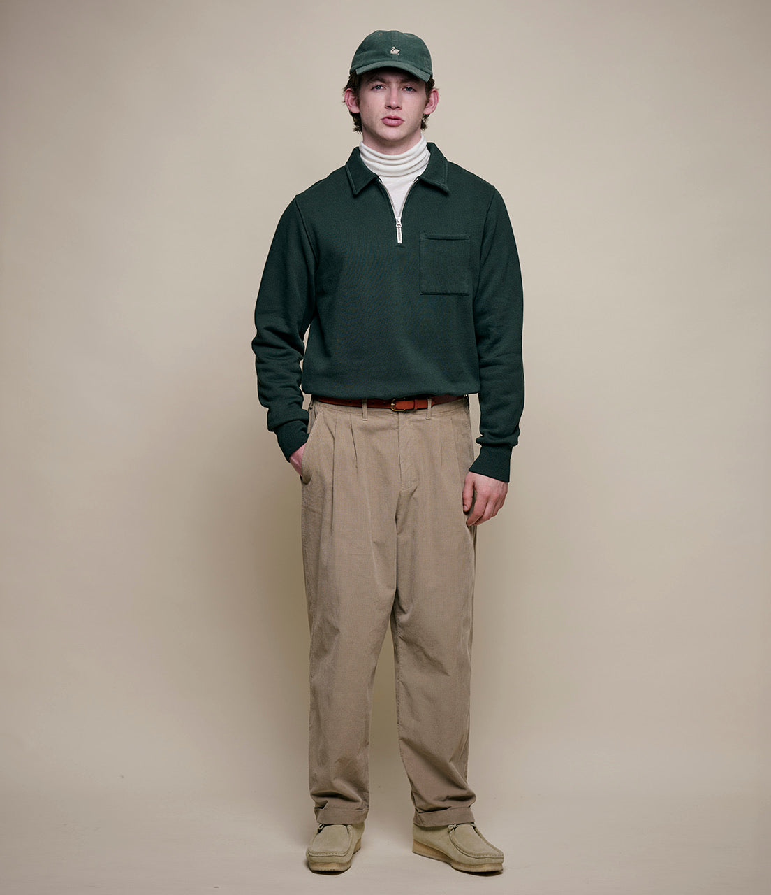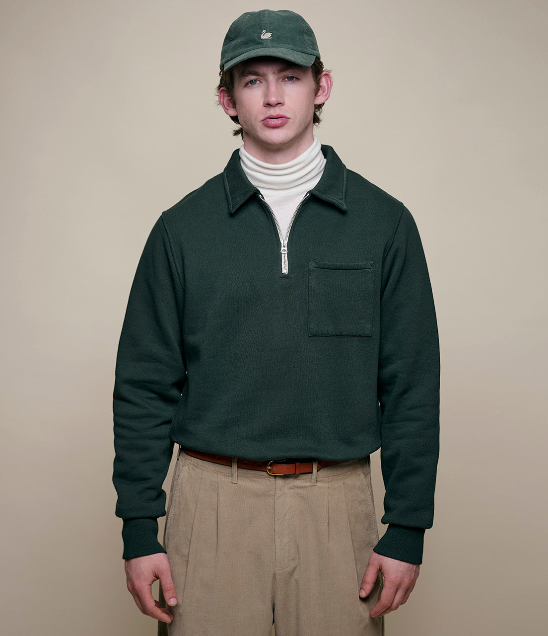 MERZ B SCHWANEN ZIP COLLAR SWEATSHIRT - FOREST