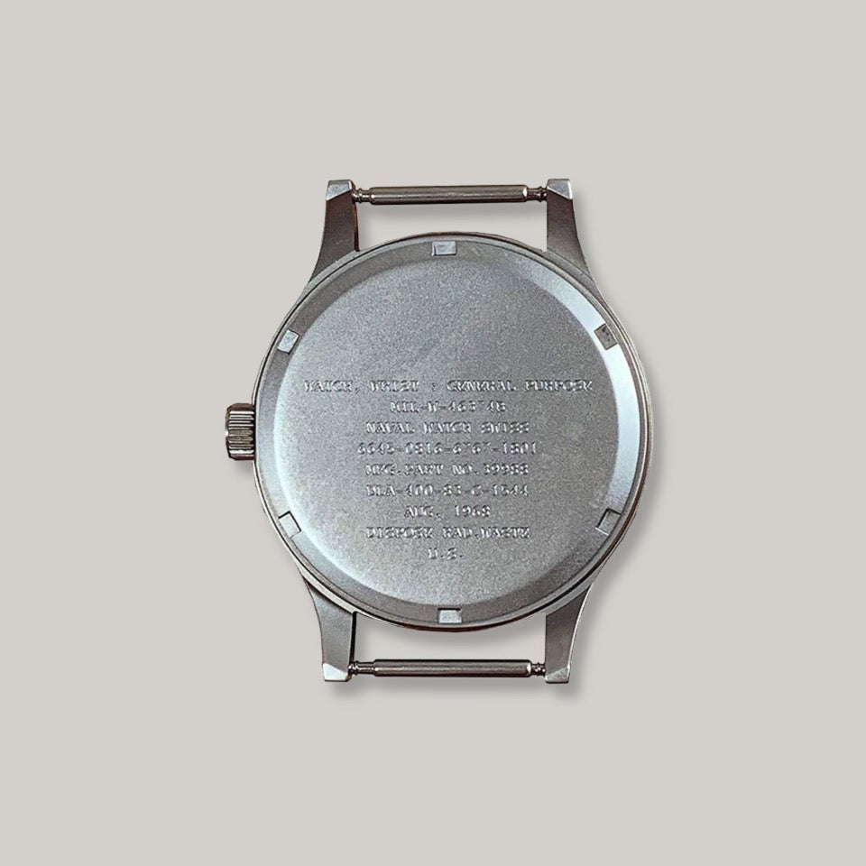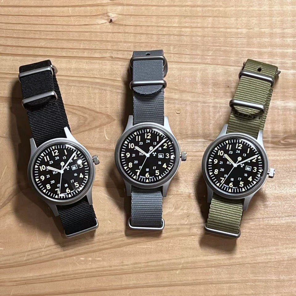Part of their original watch collection, this is an iteration of US Forces Mil. 01 vintage watch, complete with dome lens and an updated case size expanded to 38mm. The luminescent paint on the numbers, indexes, and hands on the dial uses "LumiNova (R)" paint, which is only allowed to be used on Swiss watches, and has a longer luminescent time and stronger luminescence than regular luminous.
