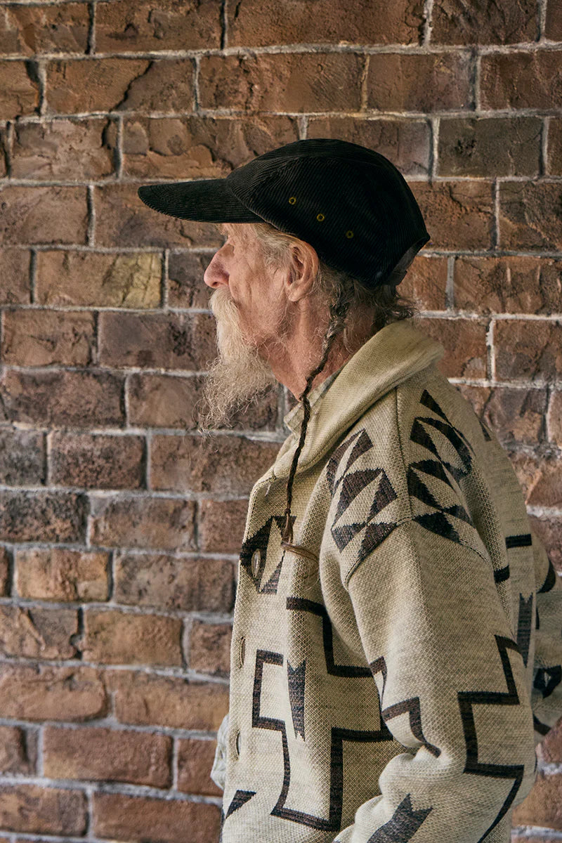 Sporty, four panel cap constructed in a thick 8-wale corduroy, with leather adjustable strap on the rear. Details include a longer peak and embroidered ventilation holes in contrasting olive on the sides.