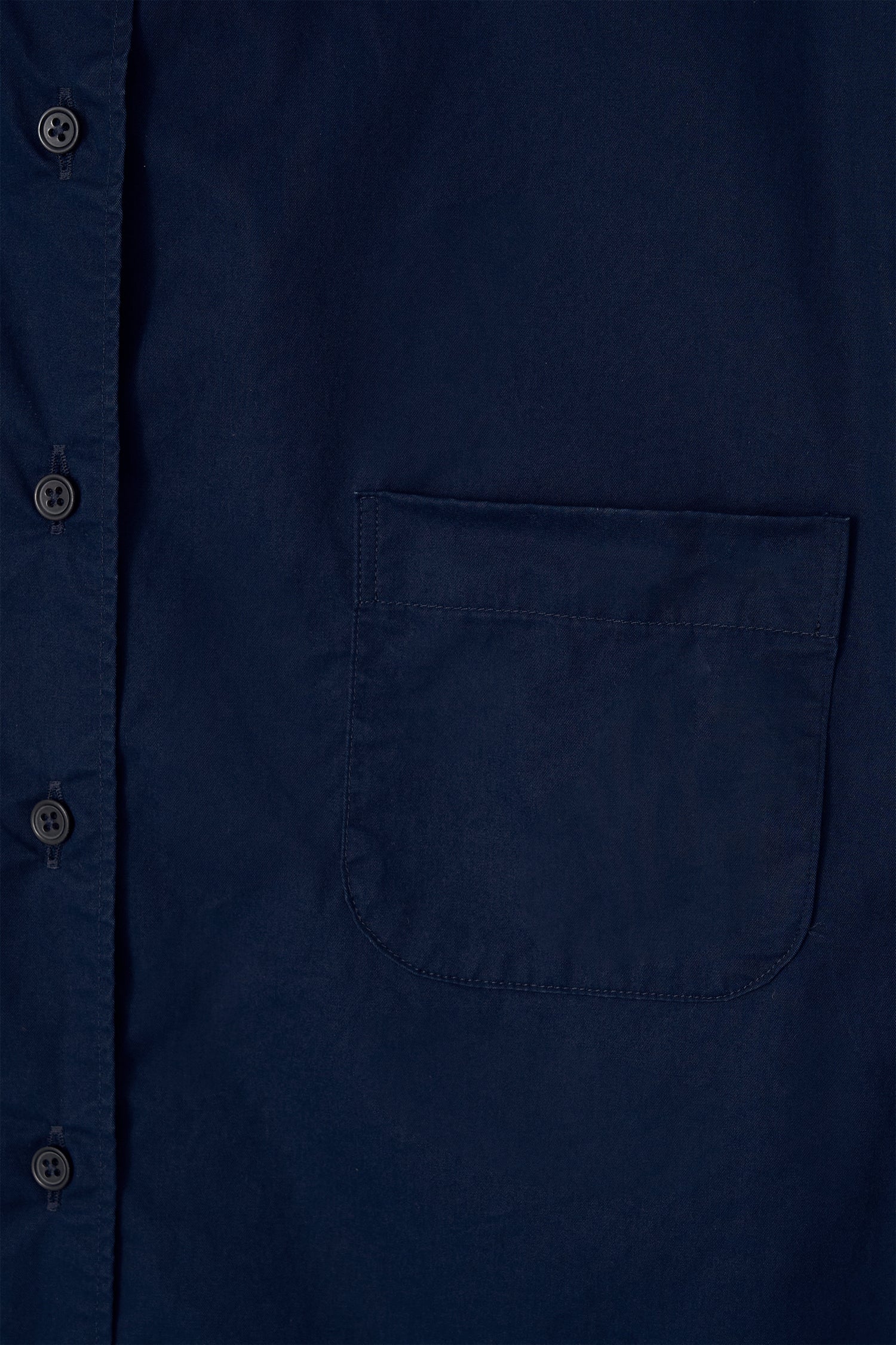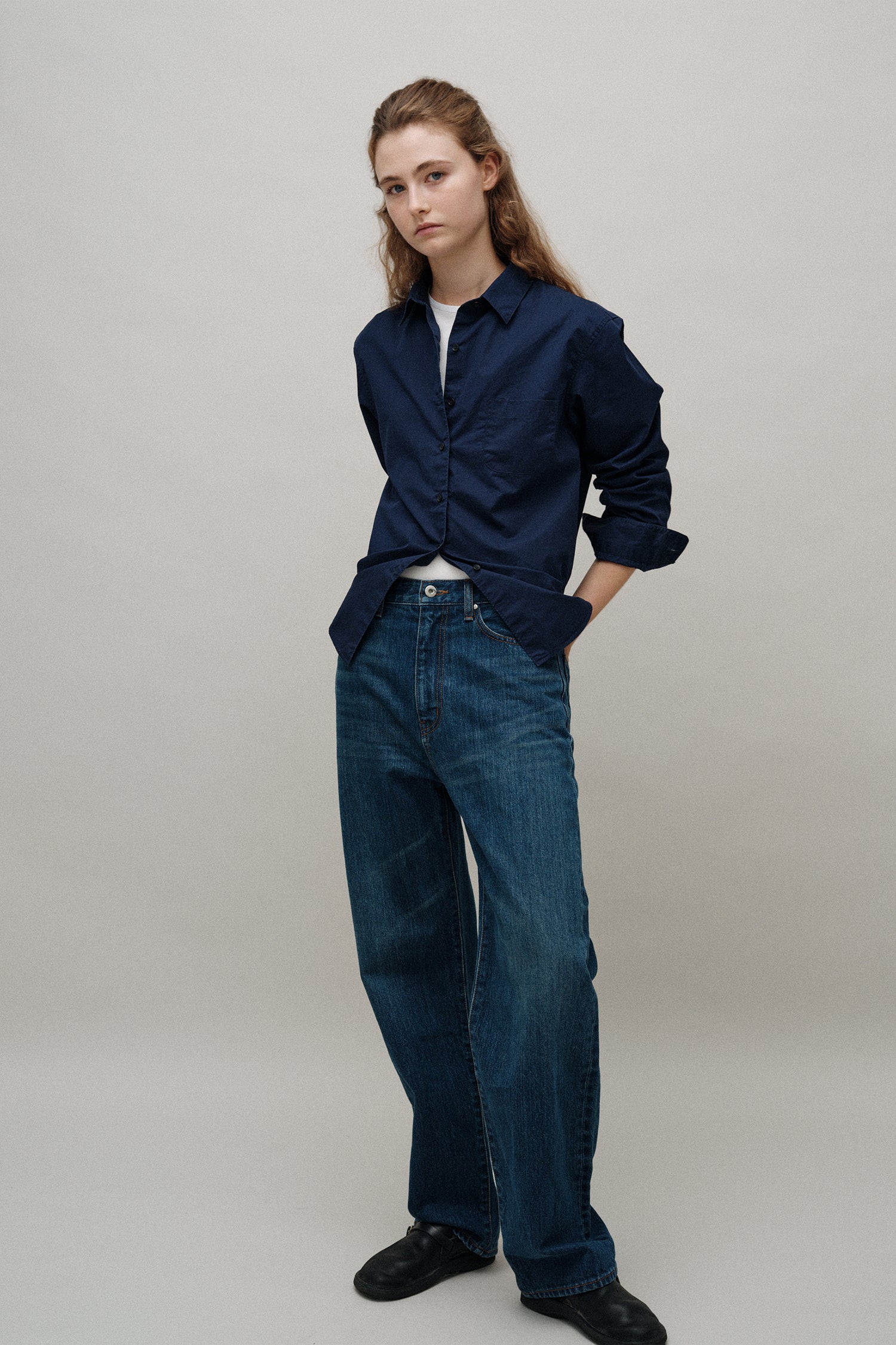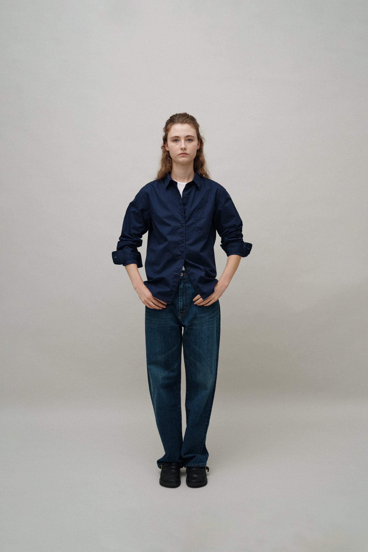 This standard-fit shirt is crafted from 100% cotton and has a lightweight feel. The basic silhouette exudes a classic yet casual vibe, and its moderate length makes it ideal for styling on its own or with other pieces. The seven mother-of-pearl buttons on the front are a rare type of mother-of-pearl, each a natural product with its own unique beauty.  Bio-washing lengthens the fabric, creating natural wear and colour variations for a vintage feel.