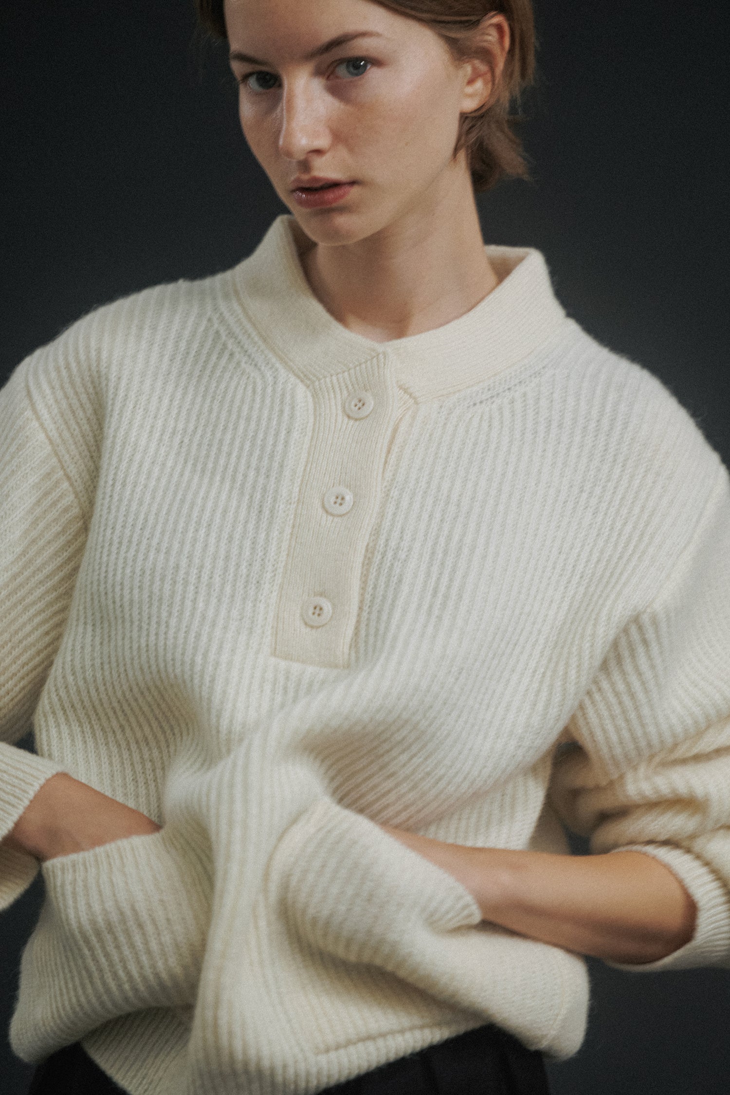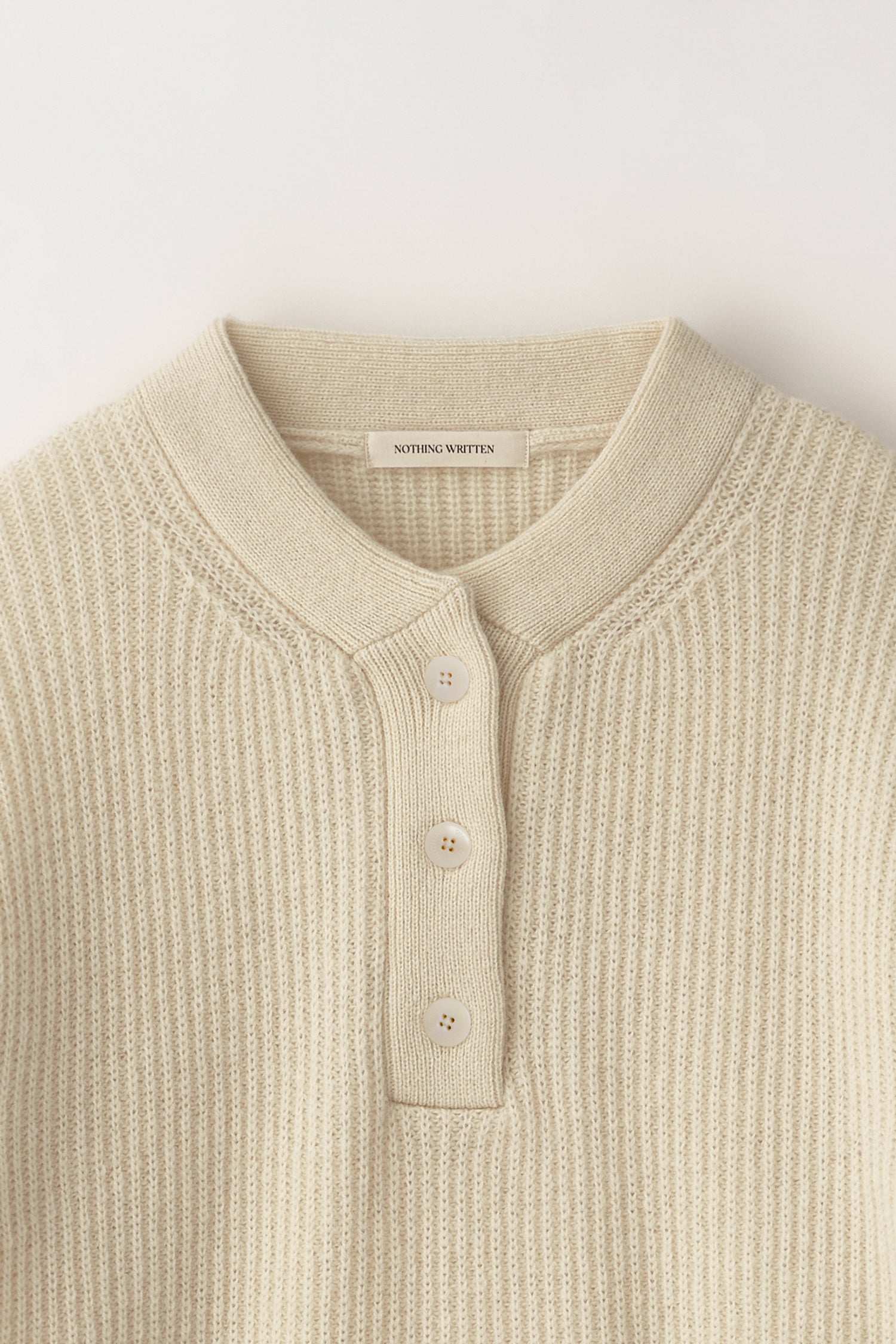 NOTHING WRITTEN SHETLAND WOOL HENLEY - NECK PULLOVER - IVORY