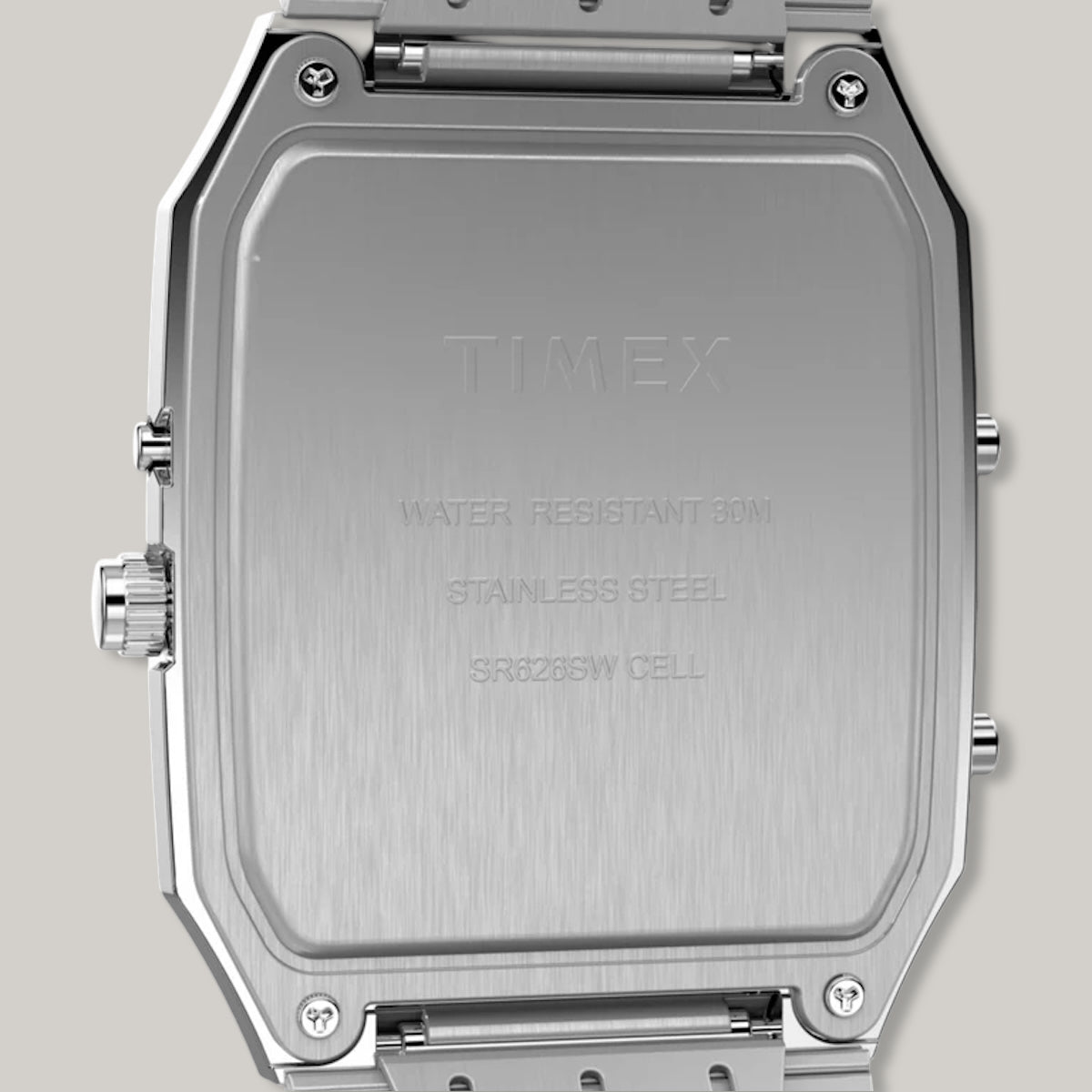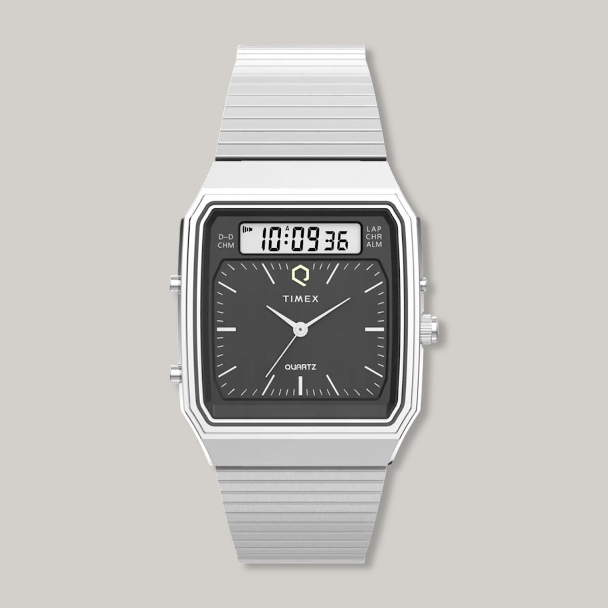 Q TIMEX® 1982 ANA-DIGI REISSUE 33MM STAINLESS STEEL BRACELET WATCH