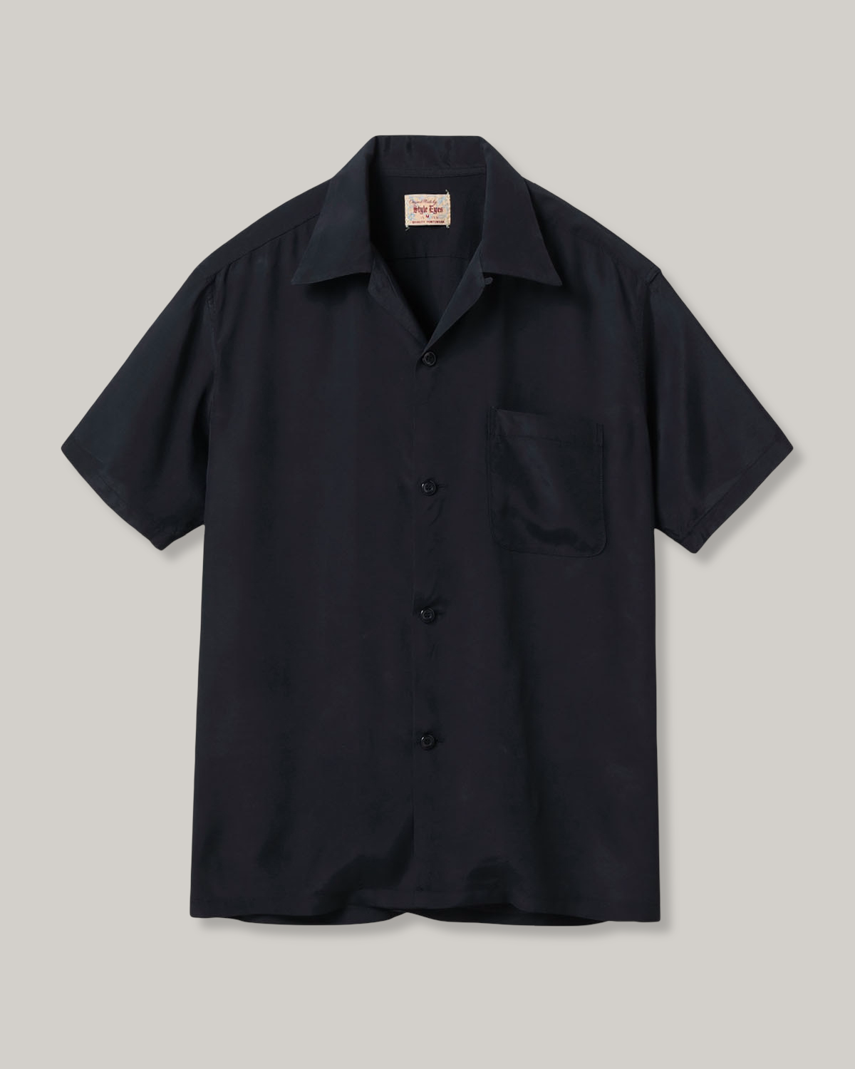 STYLE EYES - PLAIN RAYON BOWLING SHIRT - BLACK