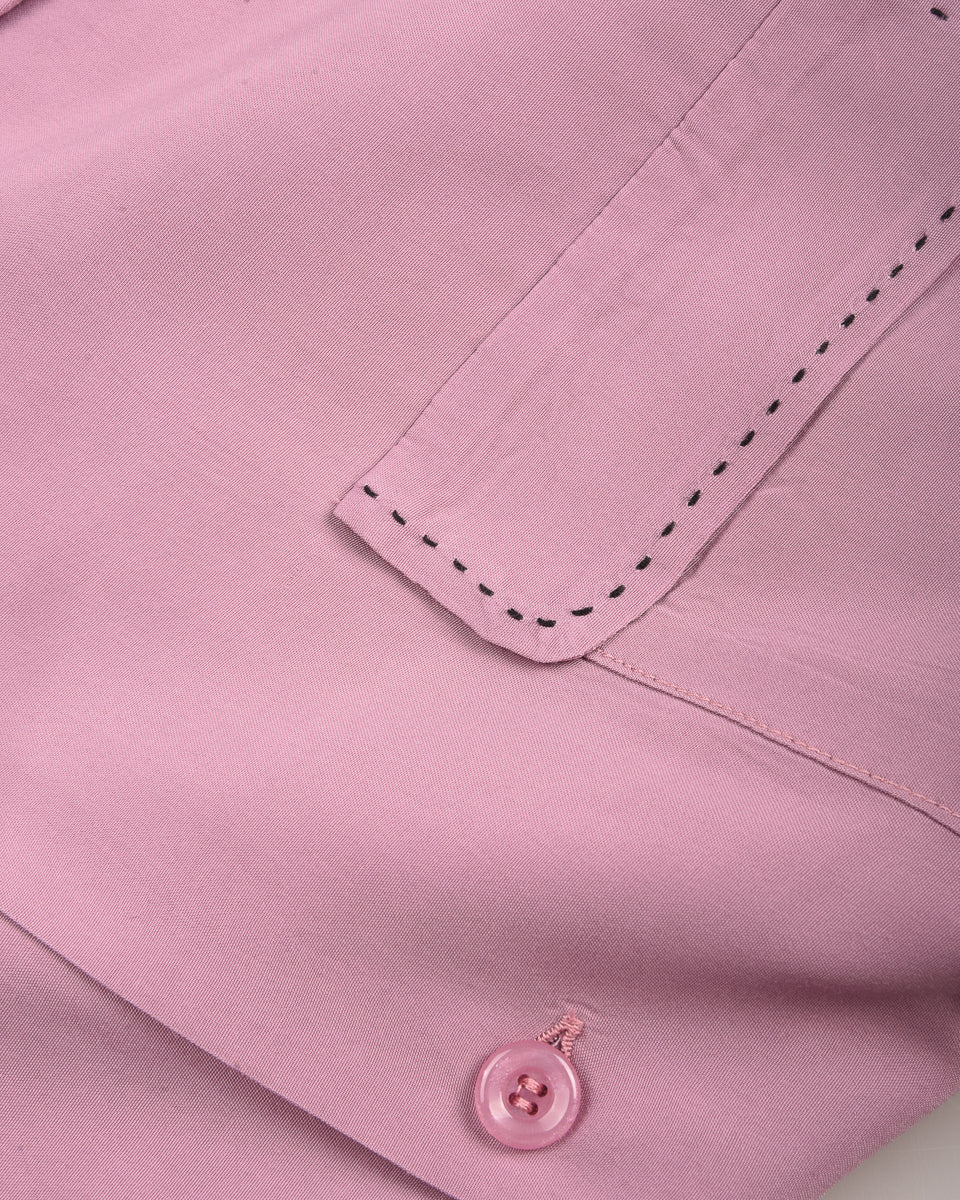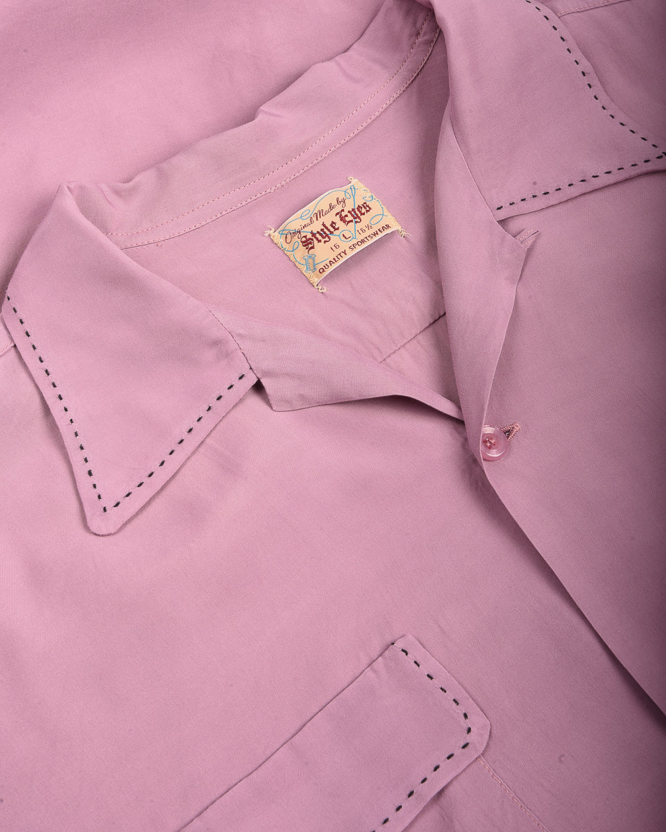 Long sleeve rayon shirt from Style Eyes, a subsidiary of Toyo Enterprises that specialise in 1950's and beyond spectacular shirting. This one in a rather fetching purple and features stitching on the flap pockets.