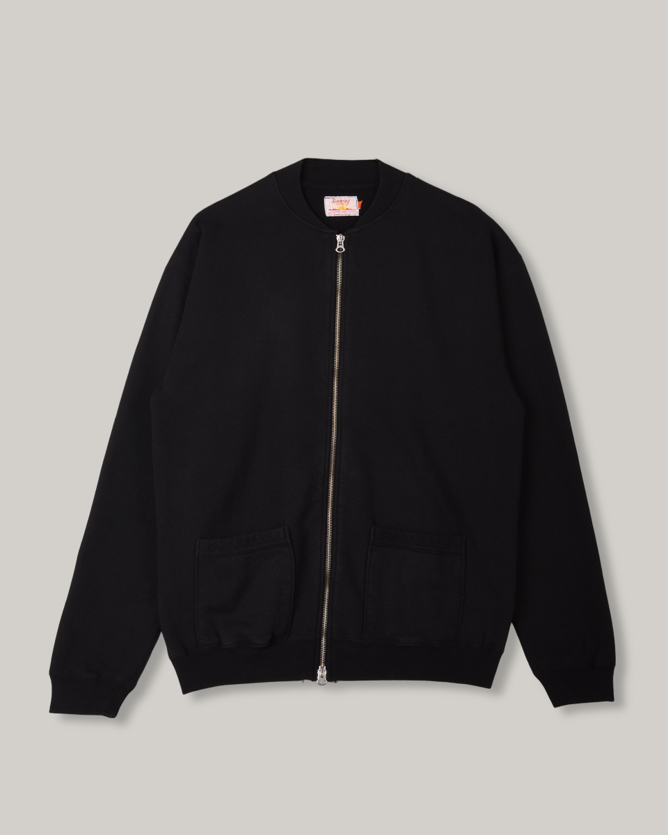 As the collection grows we are here to embrace it. Their first jacket comes collarless, with a tantalising tw- way zip and complete with ribbed pockets for loitering. Made in the same plush 450gsm fleece as per usual for the sweats, it is warm and damn robust.