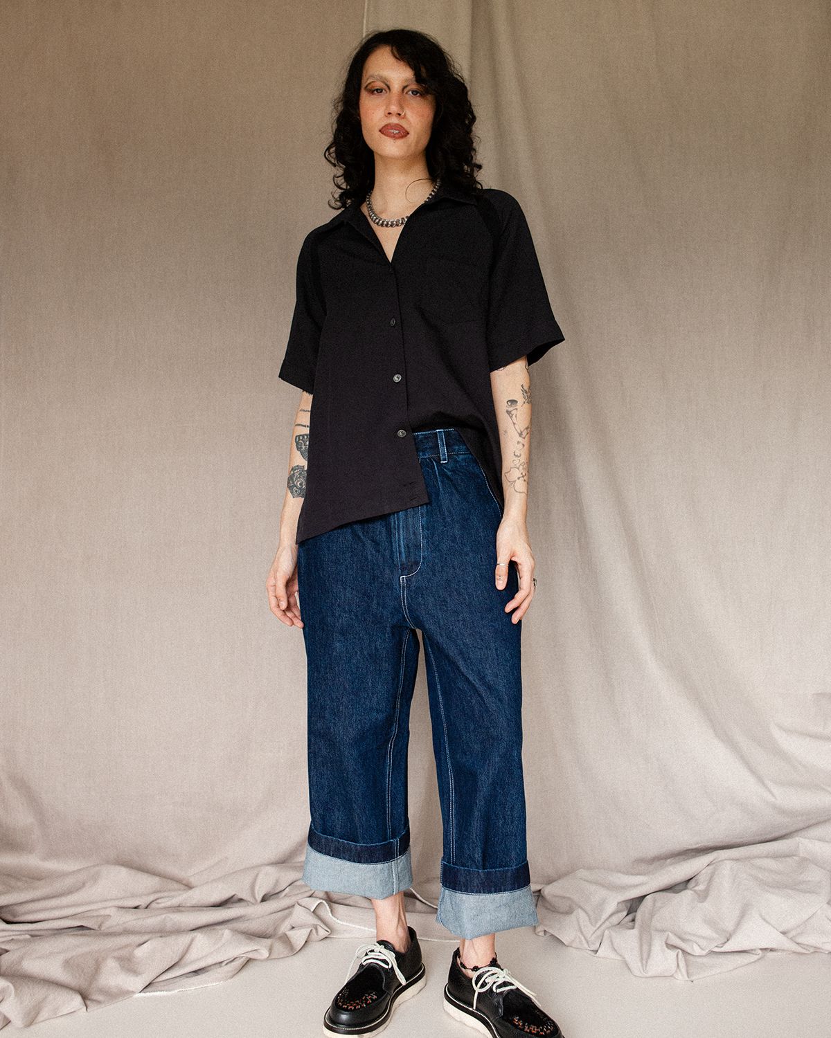 W'MENSWEAR BOWLING SHIRT - BLACK